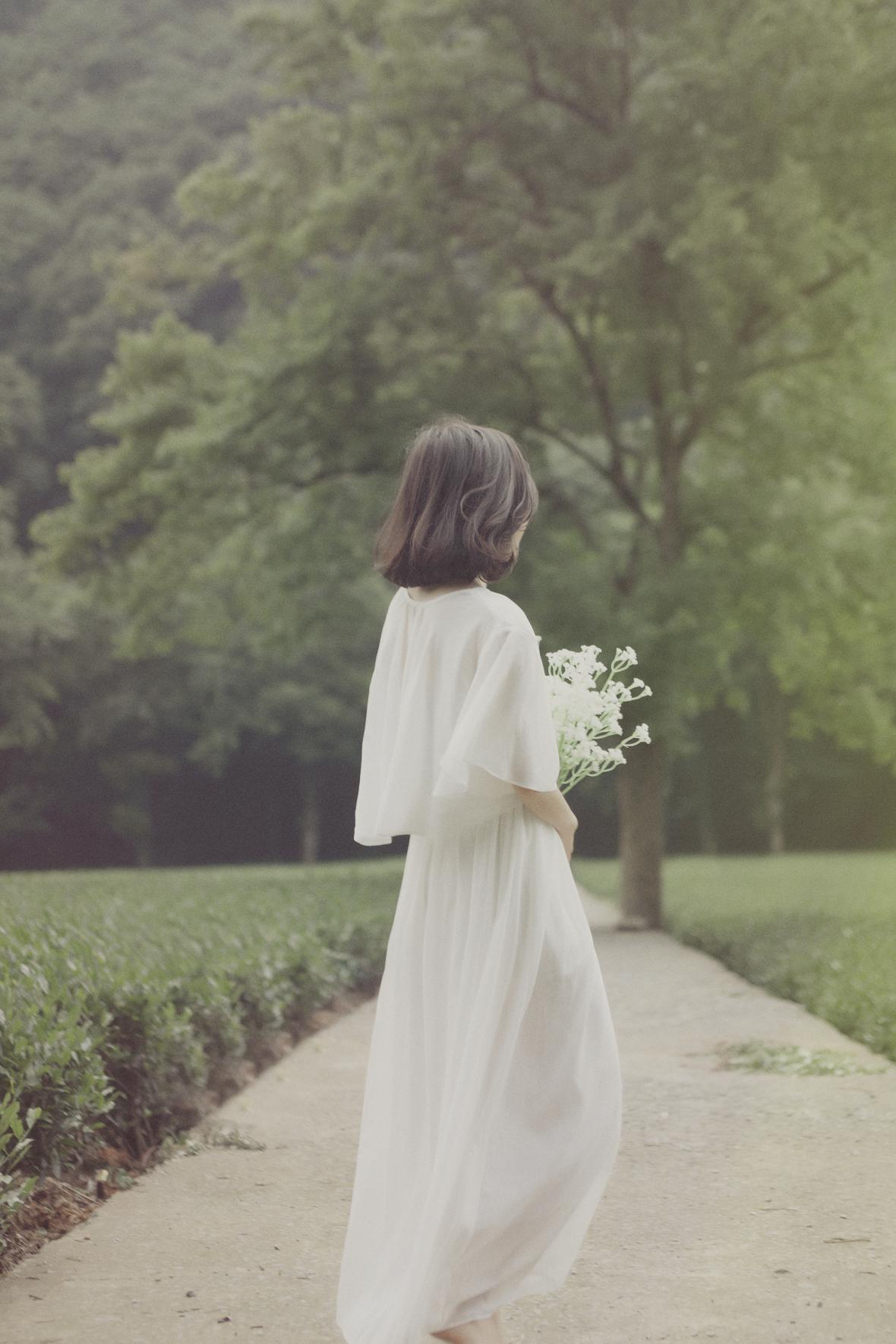 我穿着一身白裙