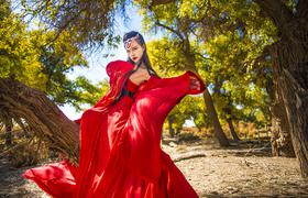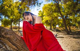 红衫霓裳,丽影翩跹-秋色影动额济纳
