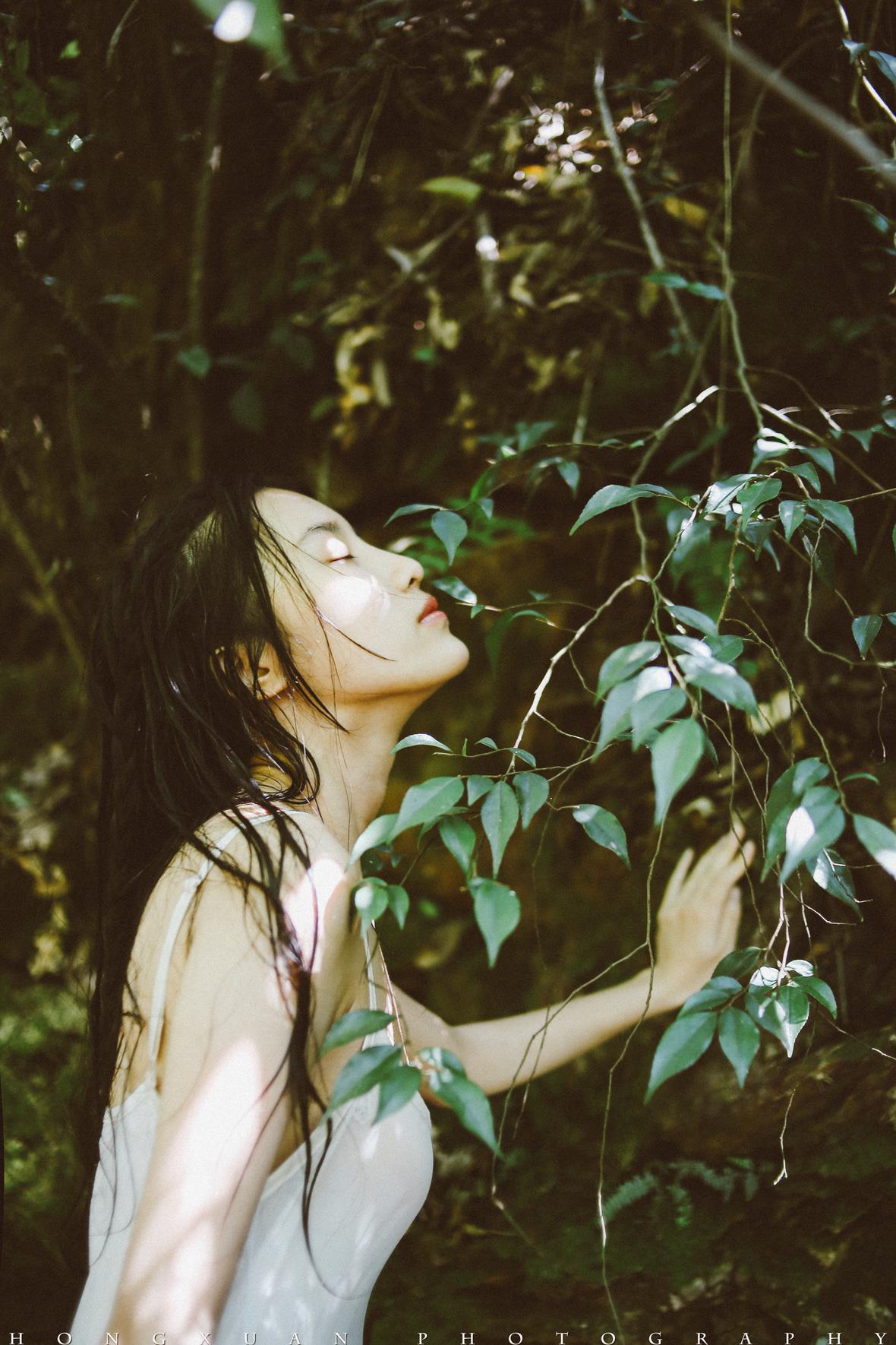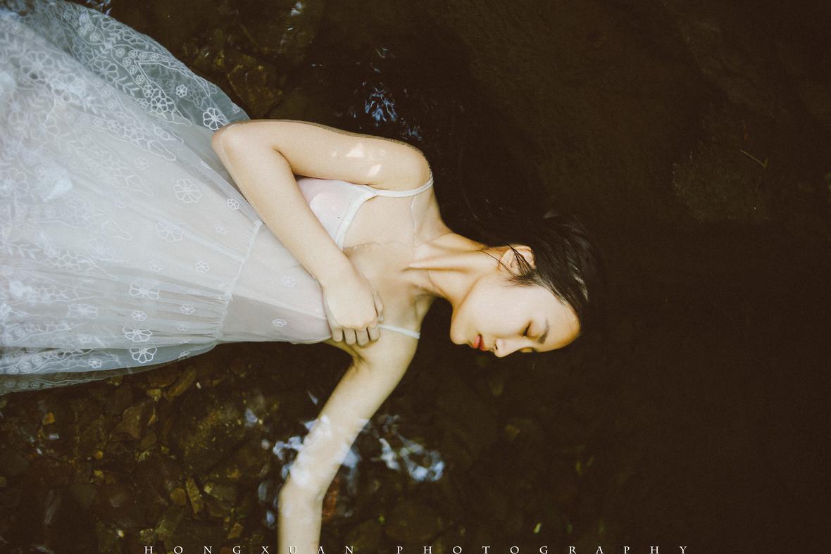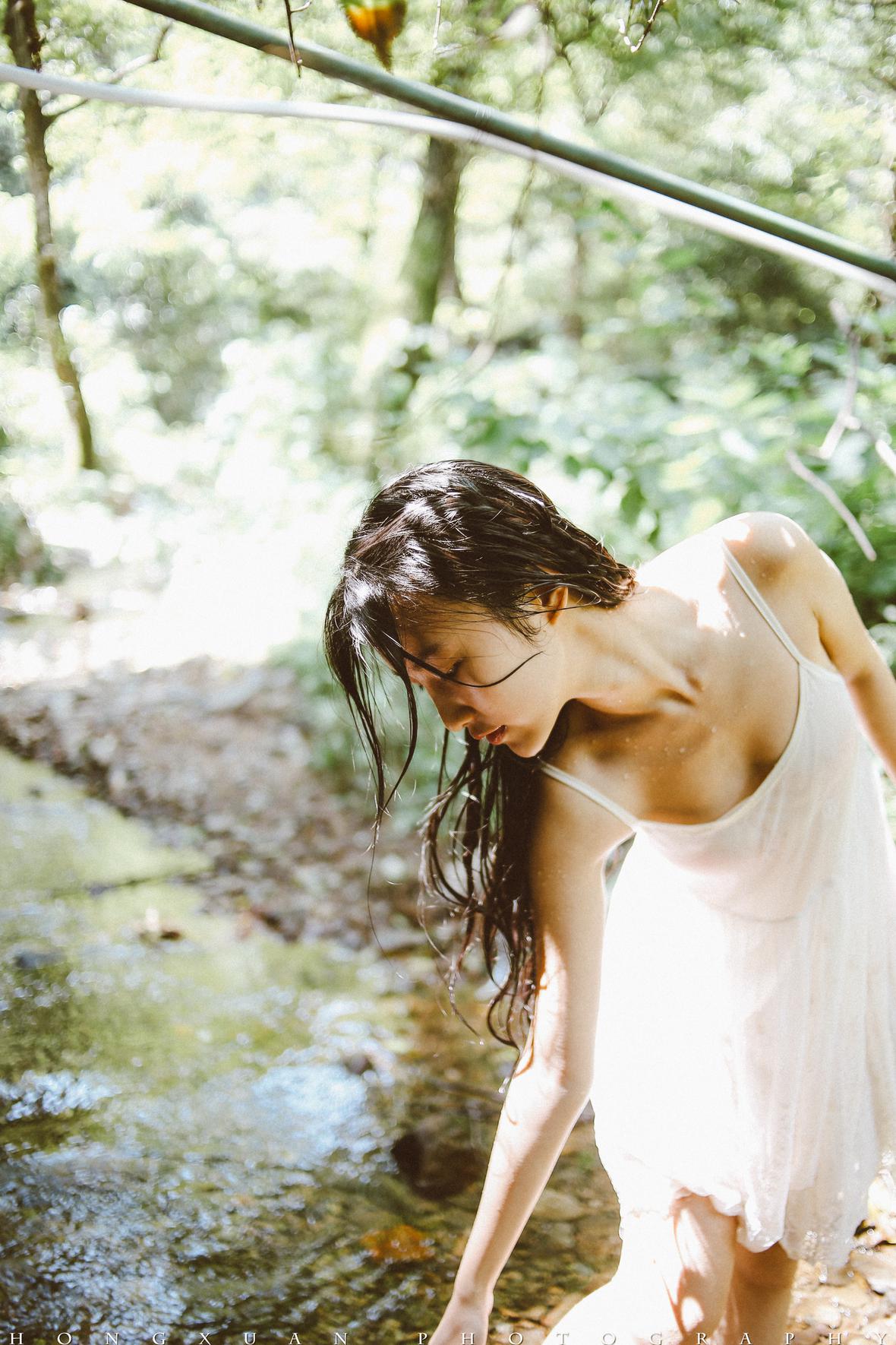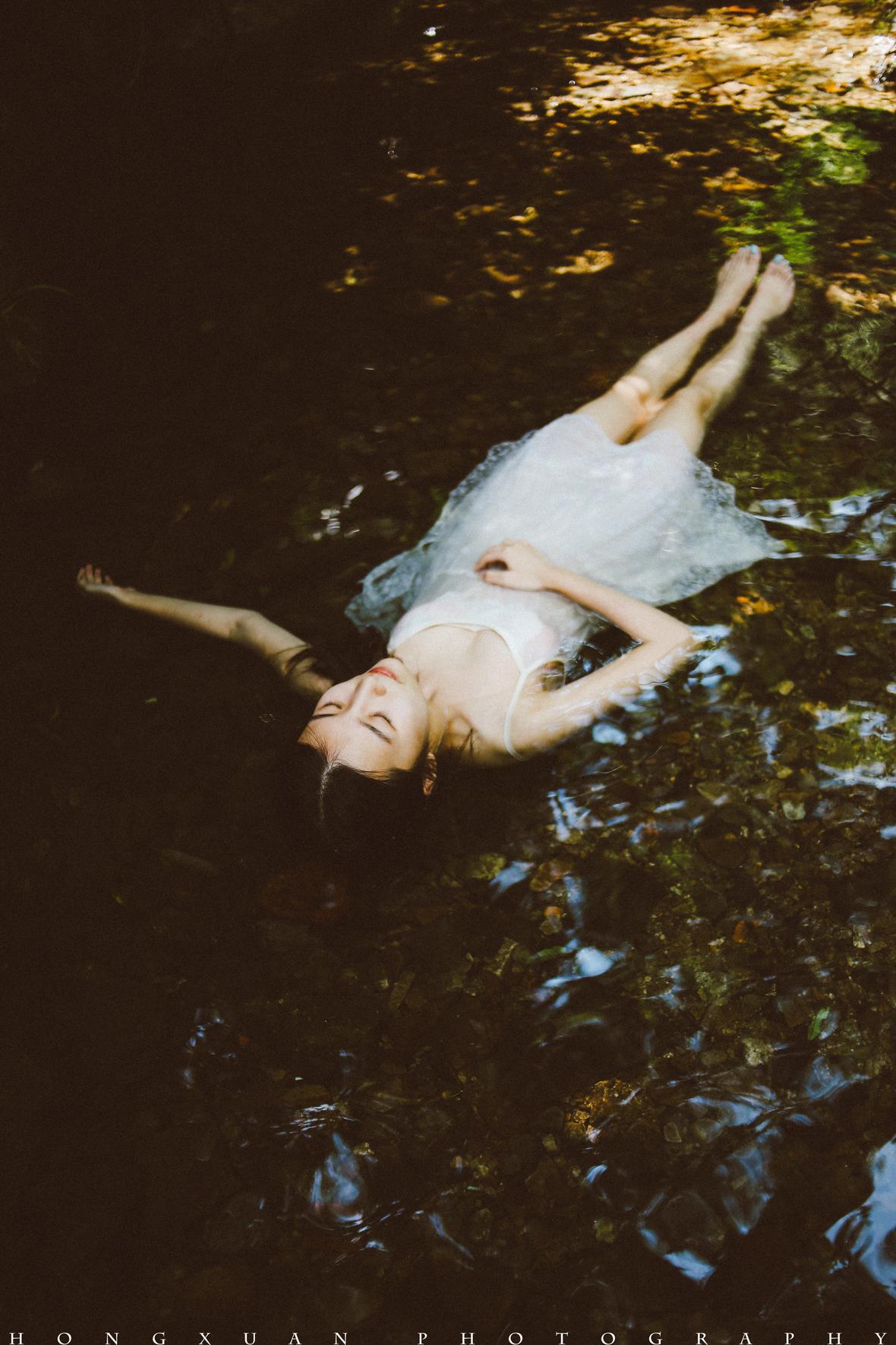 溪水微凉,雅婷握着我的手慢慢坐到水里,抽了一口气躺下去,嘴里念叨着:我不怕冷,只要美就好……
