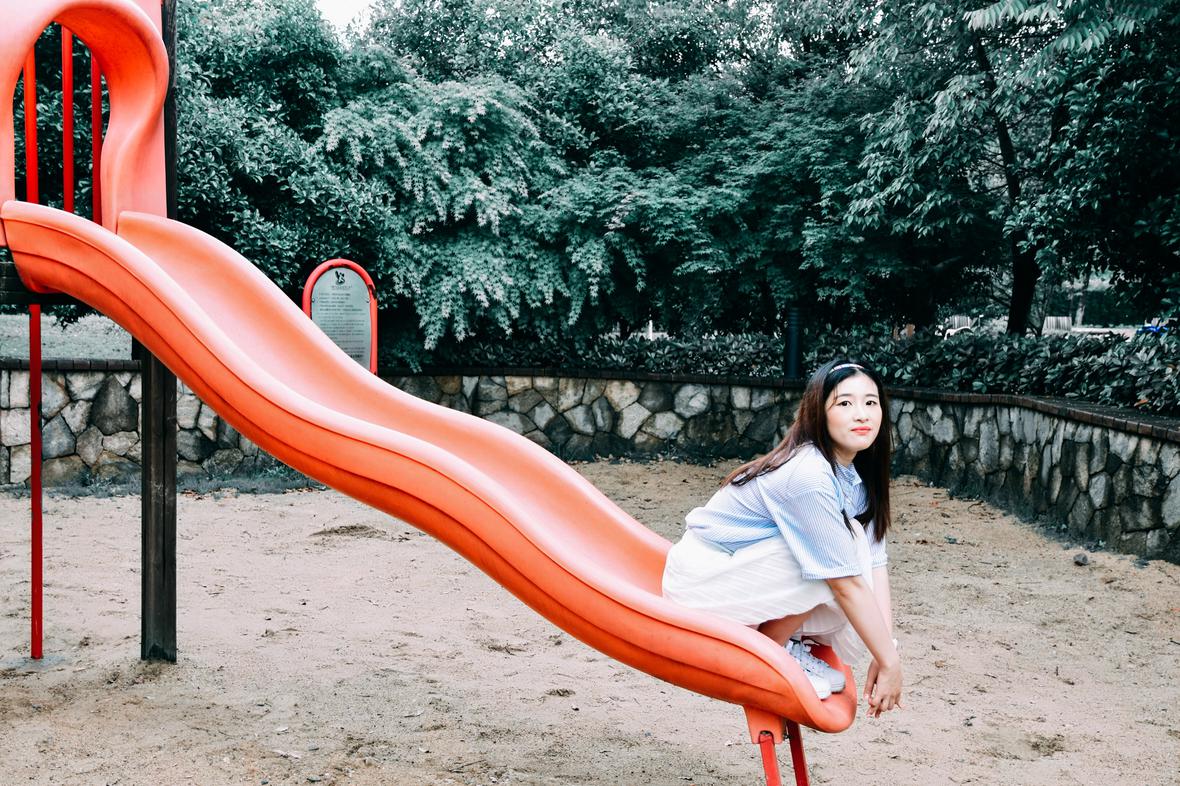 白鹭公园里的少女