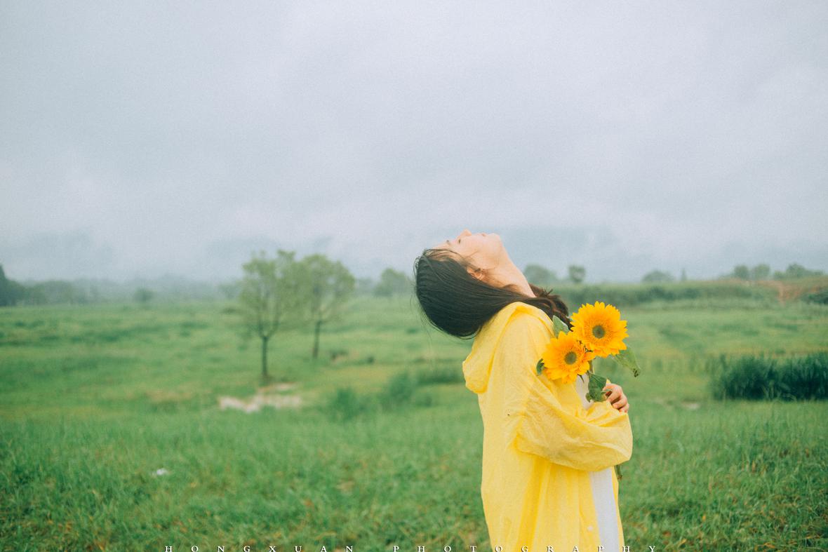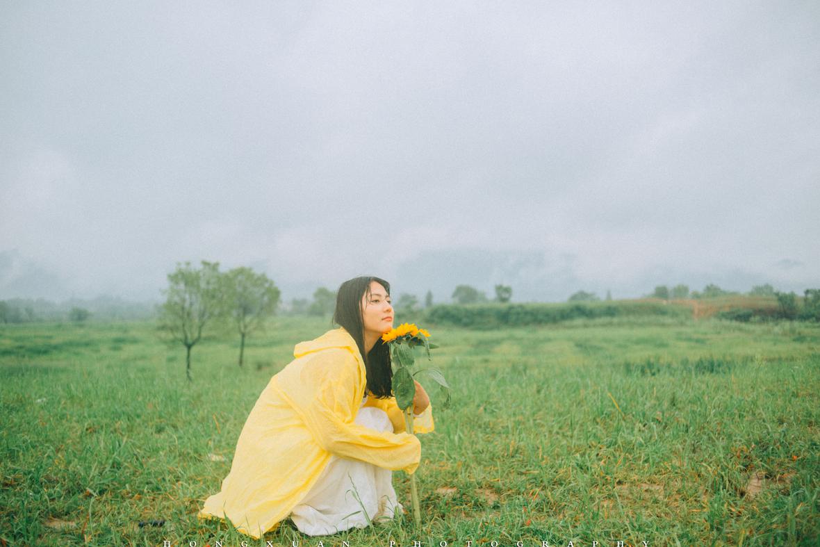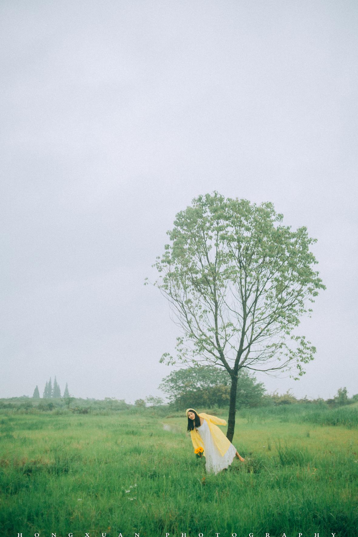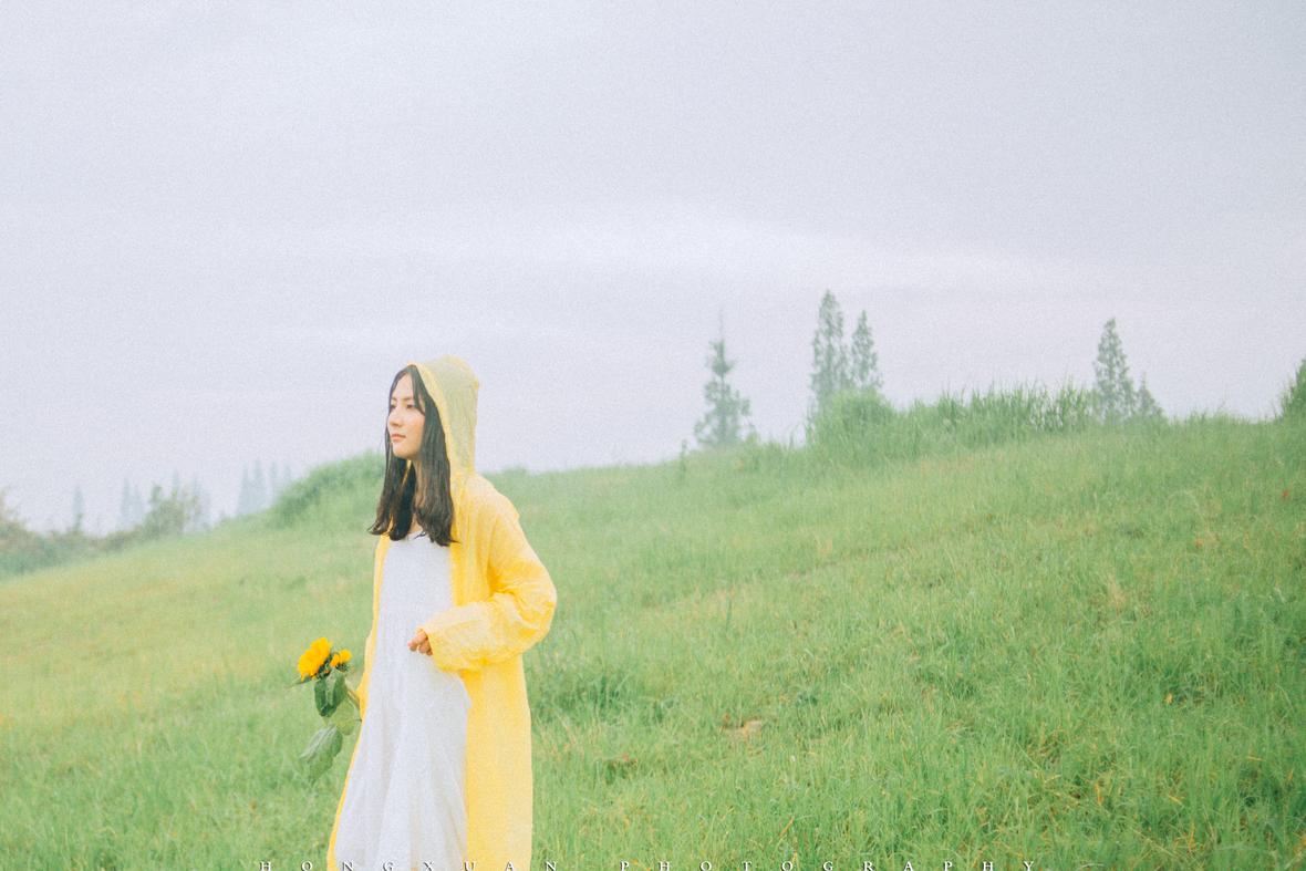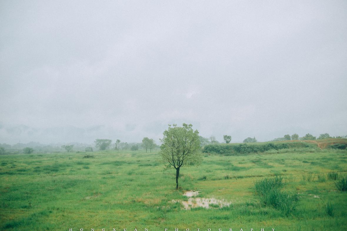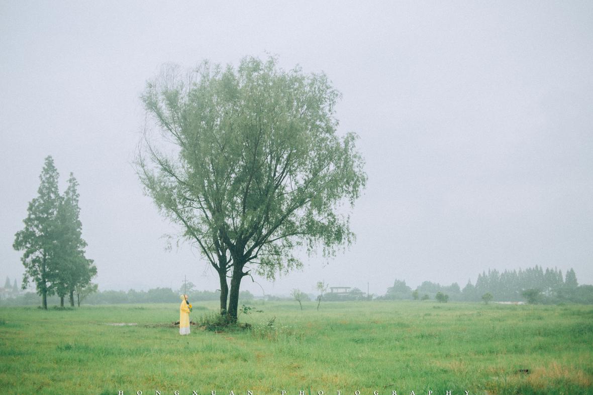 到了目的地,看着瓢泼大雨的车外,两个人躲在车里像蝗虫一样啃了一些零食,最终心一横,还是出去拍照吧。