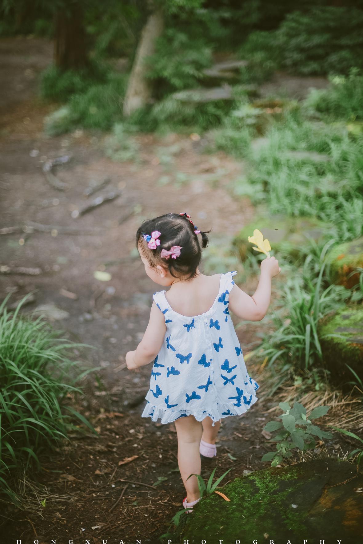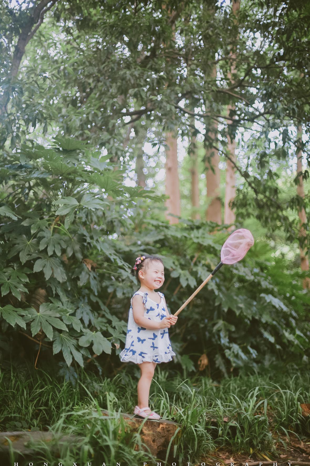 两岁的初五高举着蝴蝶网兜,追着妈妈的脚步跑起来,一边跌跌撞撞,一边嚷嚷着:“麻麻,麻麻你等等我呀……麻麻,麻麻我赶不上你了,麻麻……哎呀,总算是追到你了。”