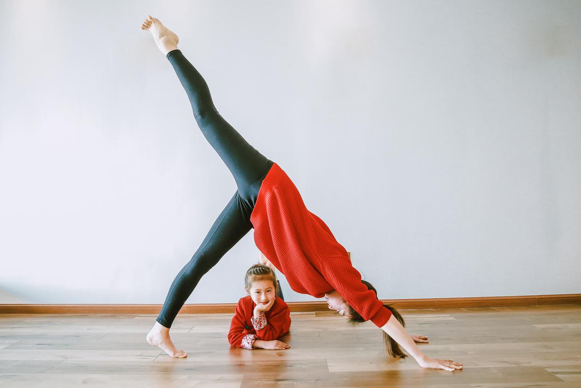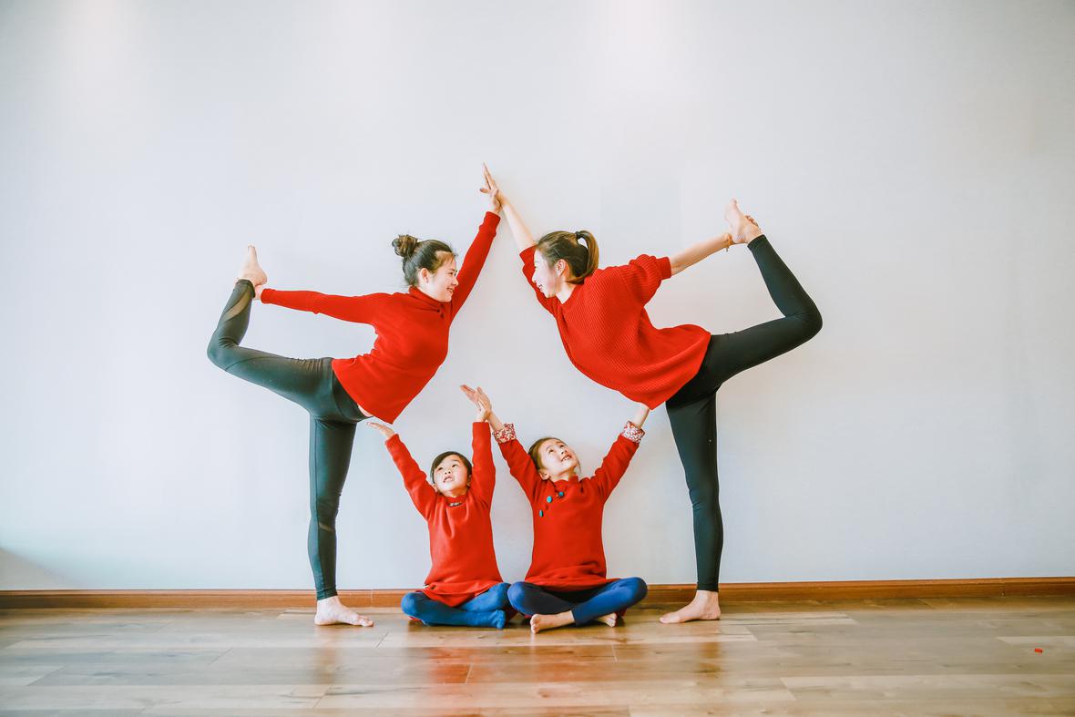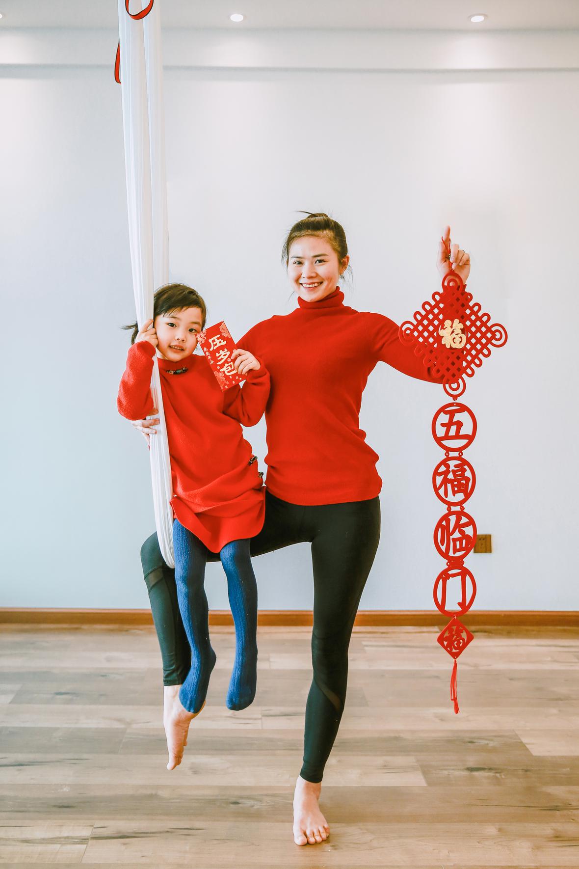 和元元认识好久好久了,那天在她朋友圈看到她的女儿穿着红色棉袄的照片,喜气洋洋的,这便约了回头拍点亲子瑜伽的照片吧。