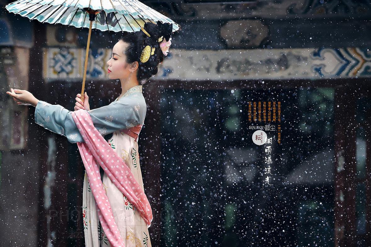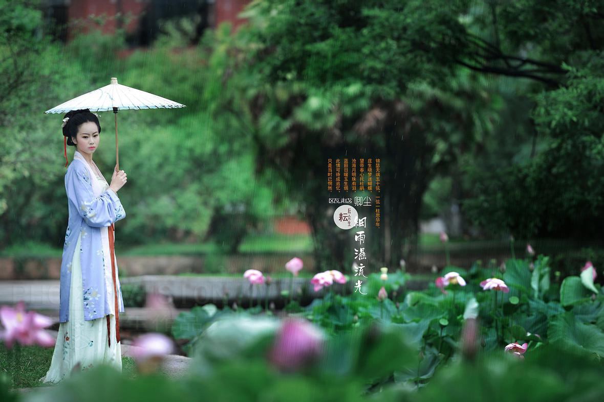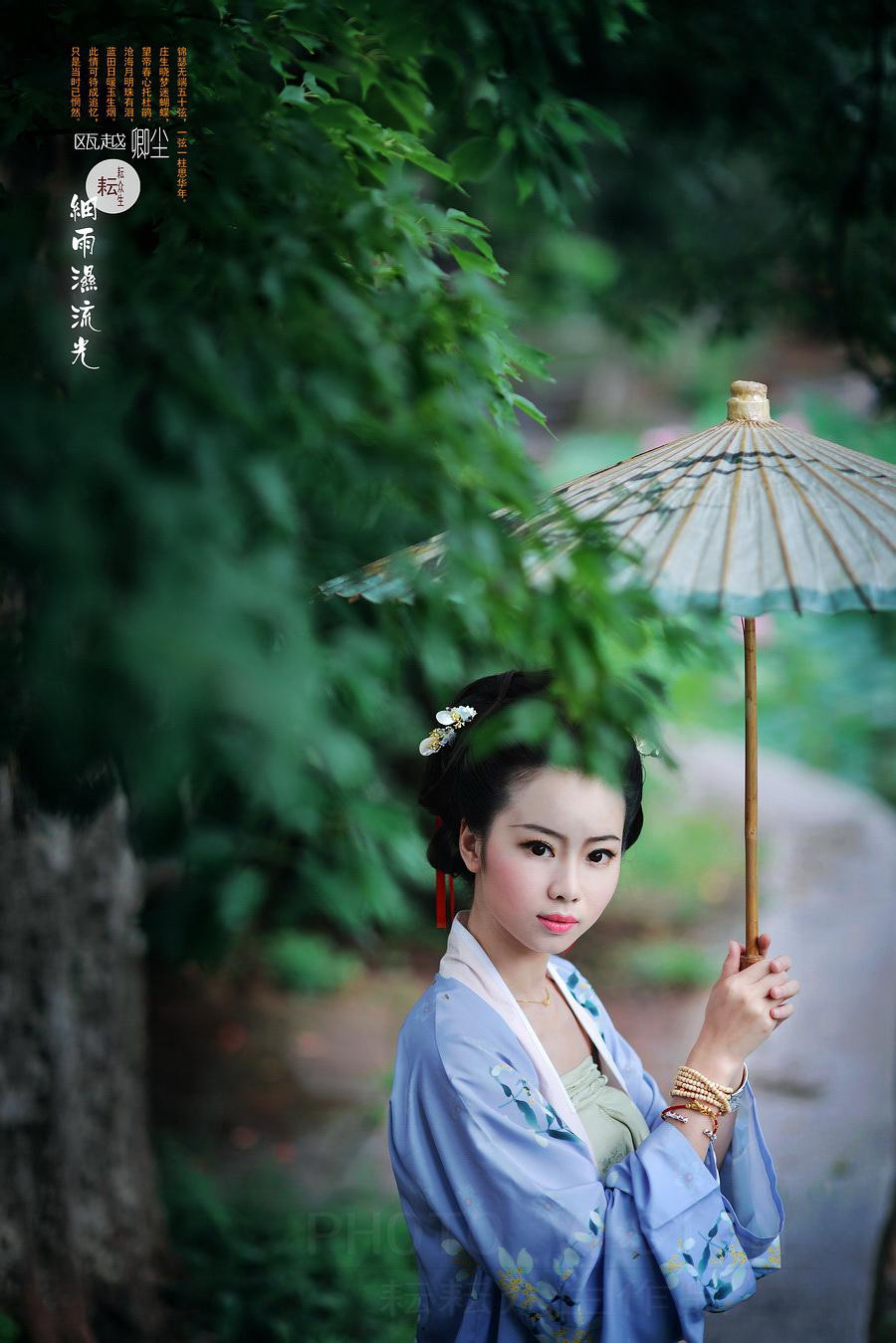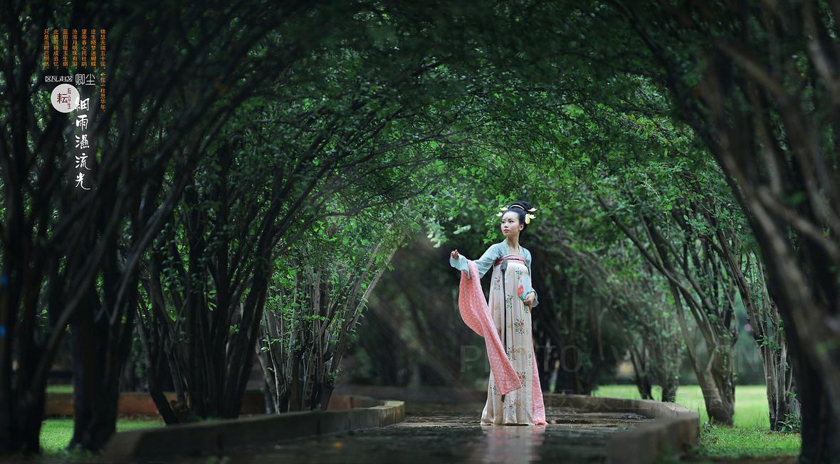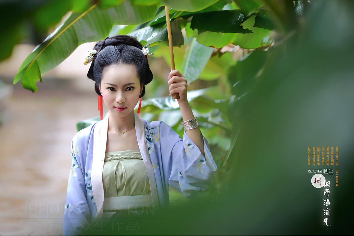 为卿尘MM拍的一组宋、唐制式的汉服小清新片(换了下风格,呵呵……),刚好遇到昆明连续几天大雨,她从浙江专程飞来拍摄,感其诚,大家为她紧张、快速地准备好,又冒着大雨拍完了两组片子,特别是拍第16张时大家都被雨淋湿透了,幸好没出废片,只是拍完相机感冒了……