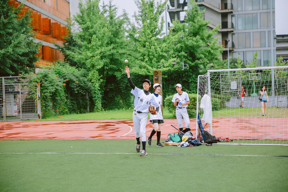 长大后,基本没有在现实生活里看到过身边有朋友打棒球,直到认识了妮子,她把杭州青叶棒球队推荐给我采访,这才第一次近距离接触。记得当时阿科在我身边,他有些羡慕,有些手痒,最终青叶的队长马辰超借了他一副装备,这才让他解了馋。