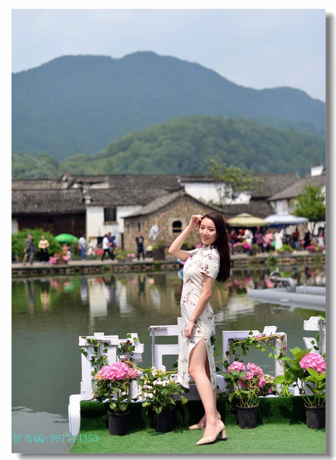 摄影师与模特在龙门古镇百花会