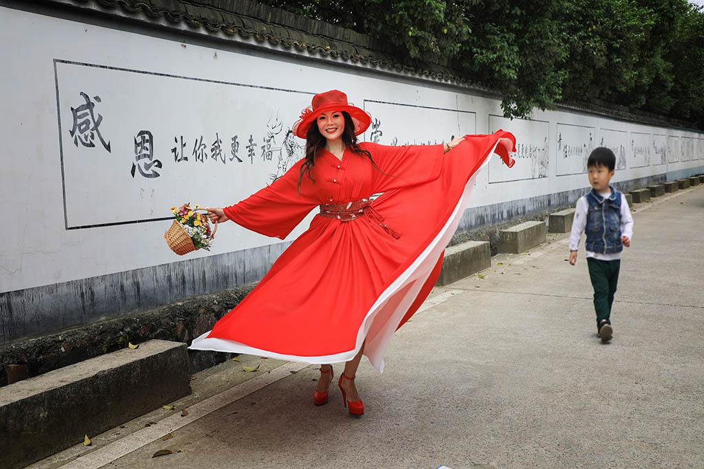龙门古镇环境美,人文美,模特在美好环境的激发下,发自于内心翩翩舞动起来。