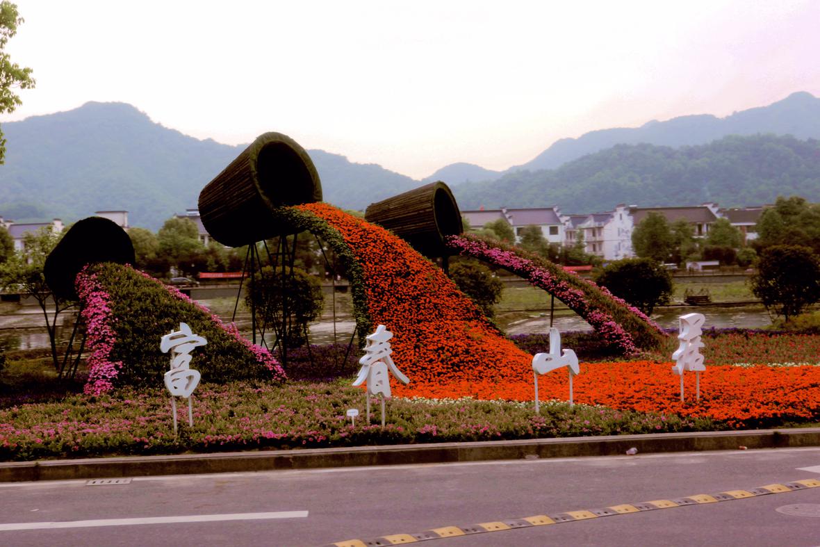 龙门古镇孙权故里,因百花盛开,独特的新造型,游客好尽心。