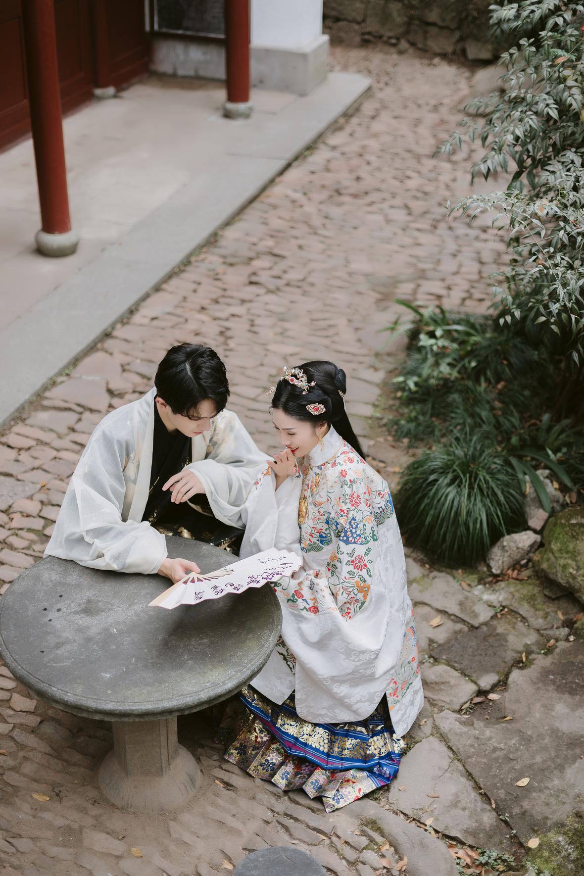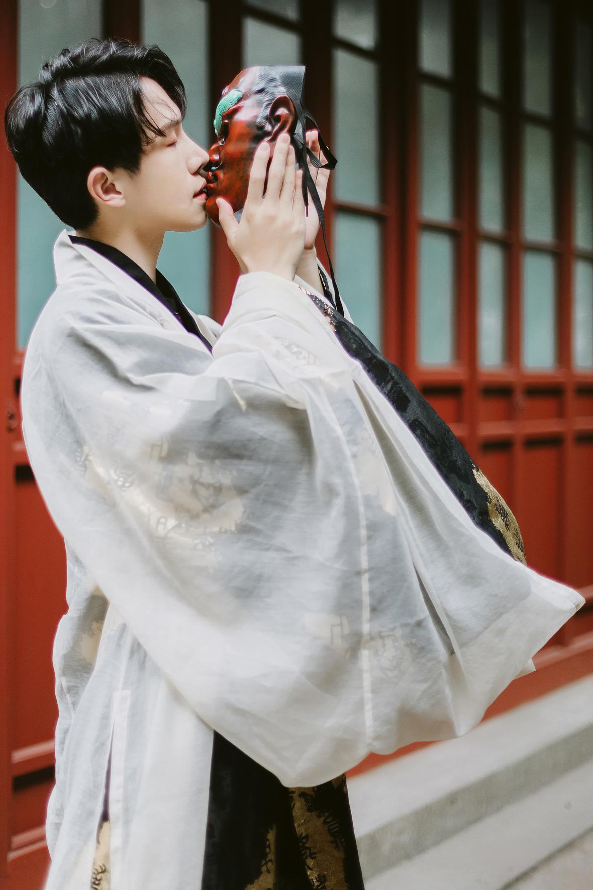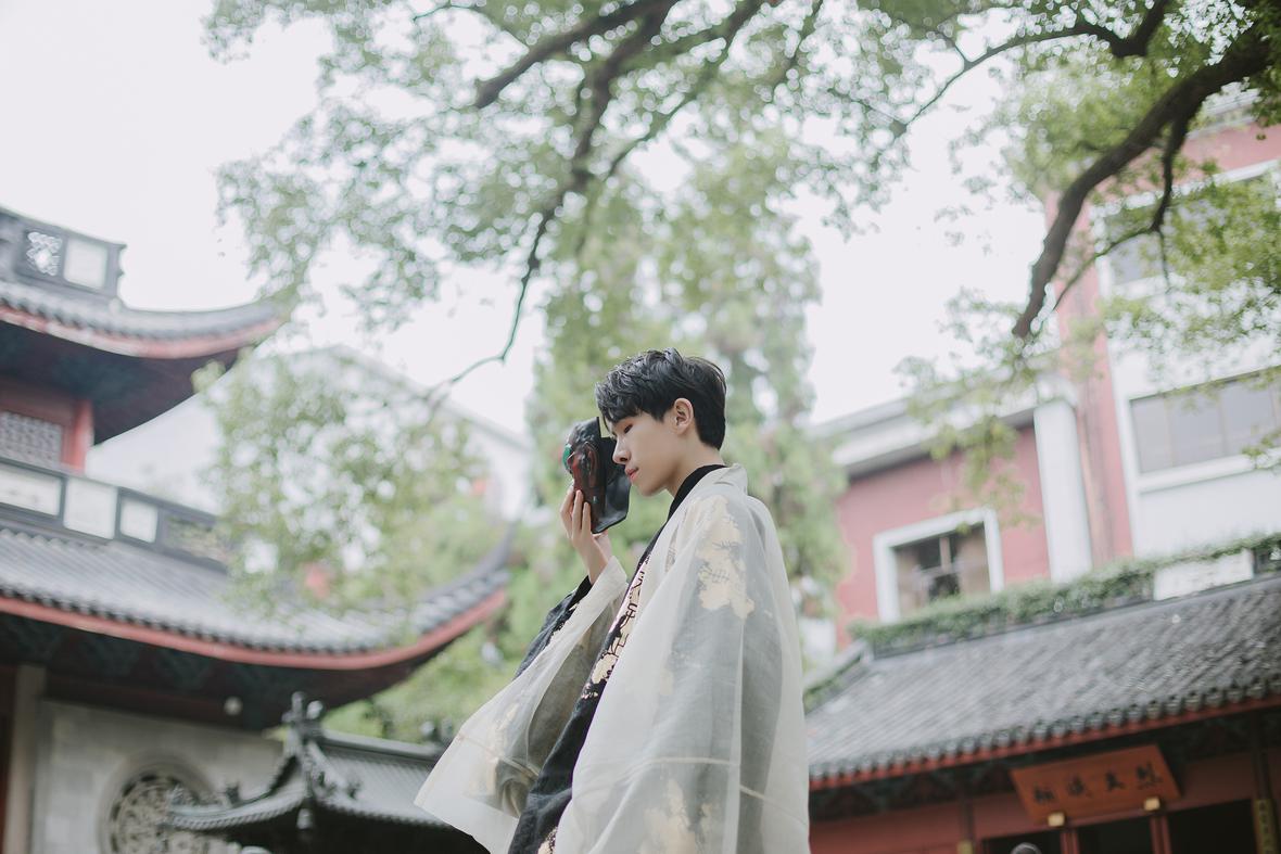 去年拍的照片,貌似是秋天的样子。当时一众汉服爱好者中,他个子显得十分高挑,我忍不住多按了一些快门。