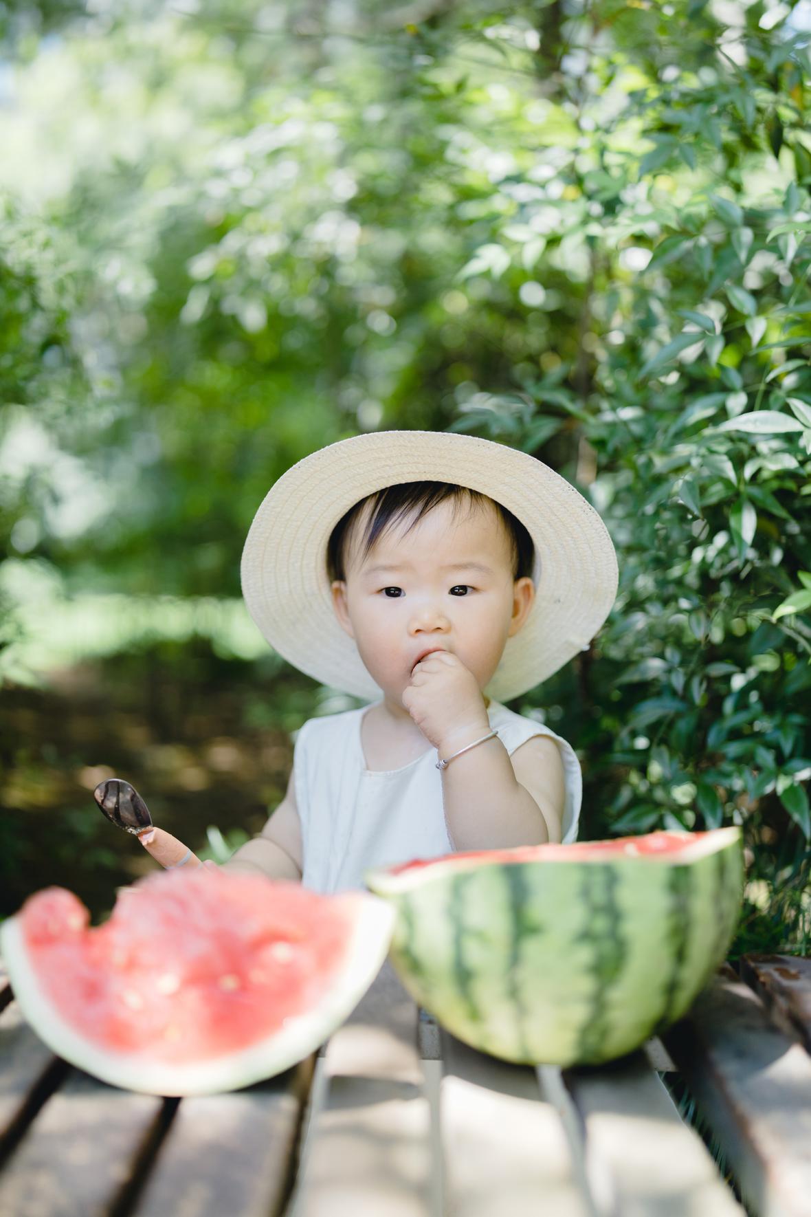 mia比菲比小9个月,语言天赋方面却是惊人,会和我说阿姨你好,也会大方地分享西瓜。