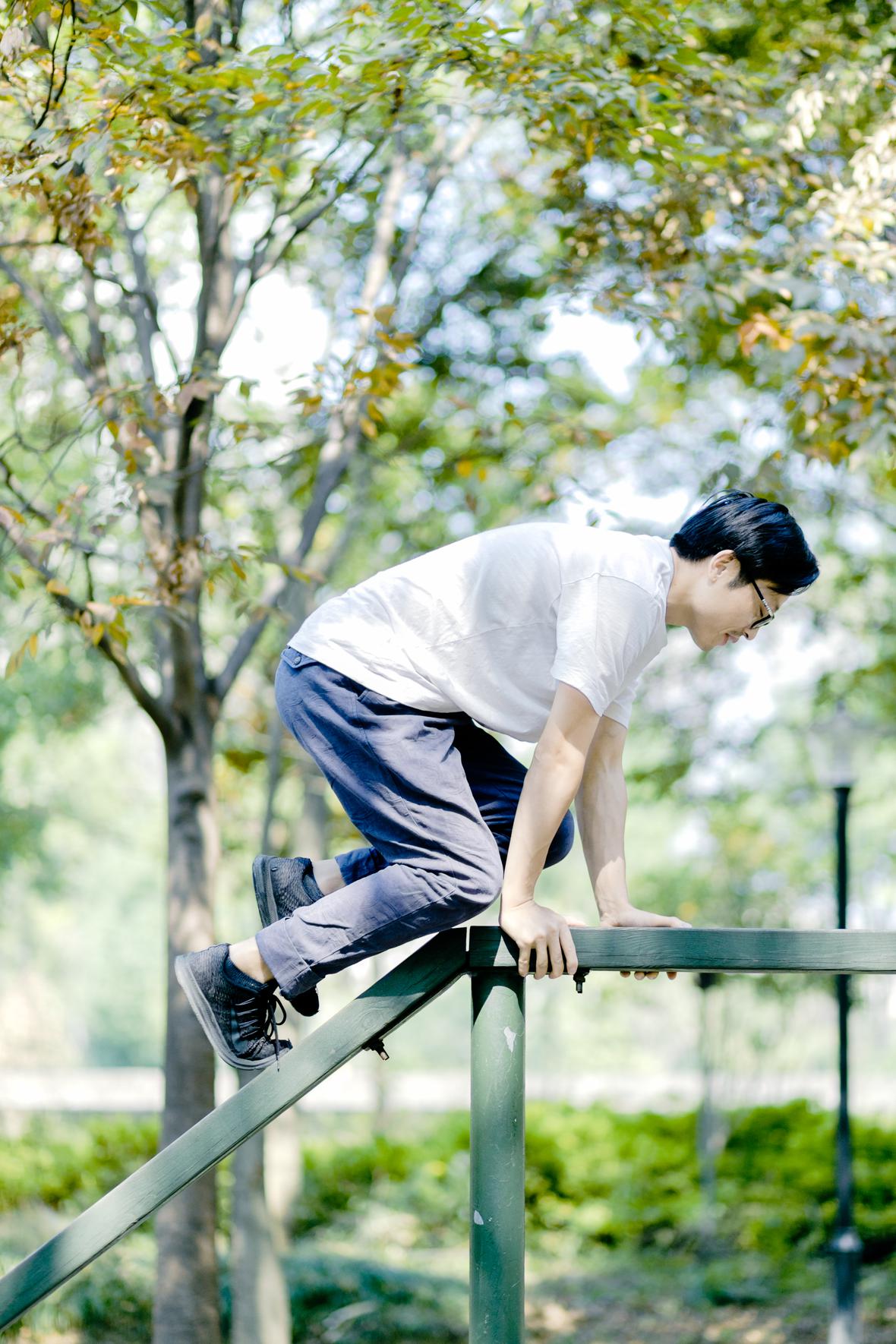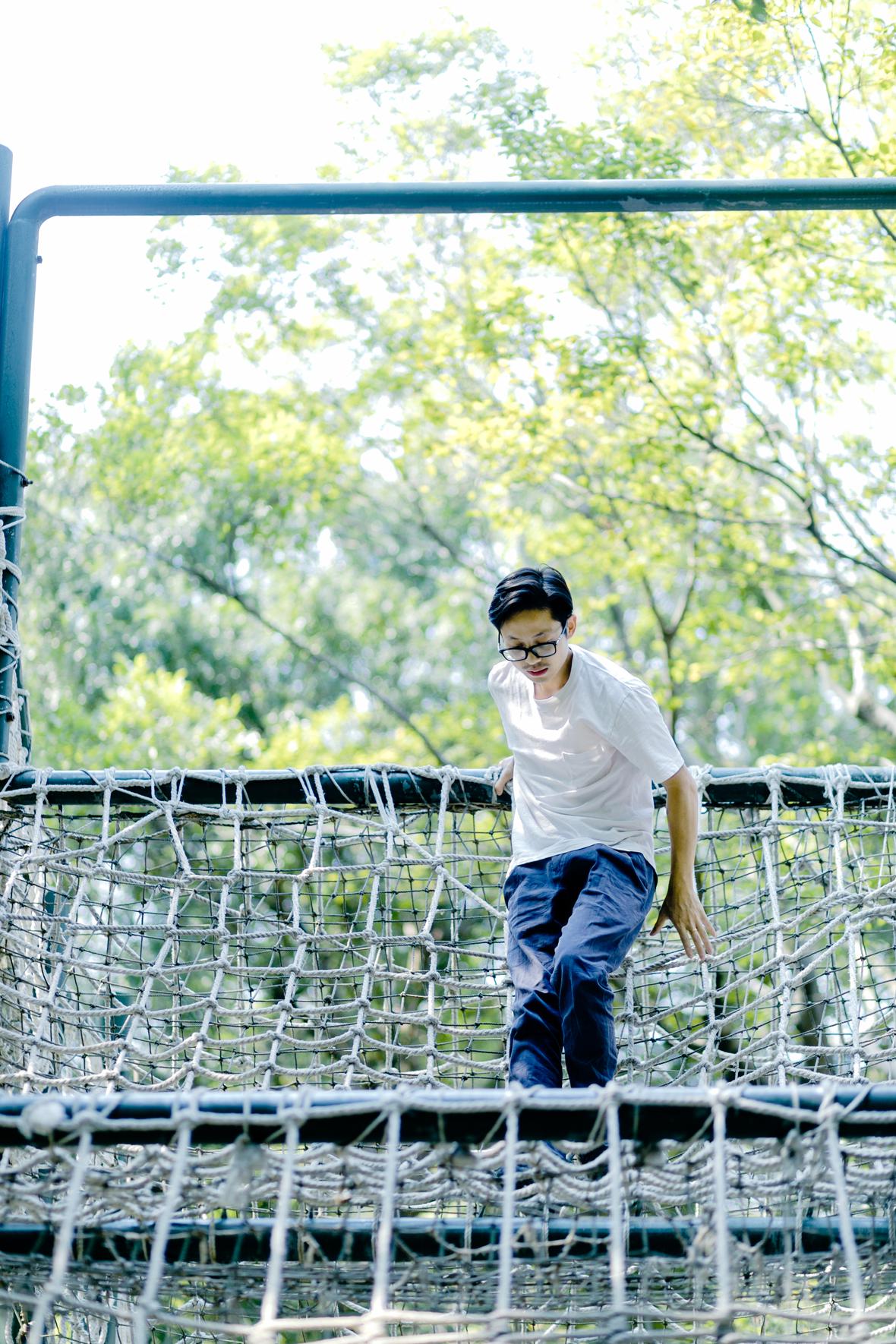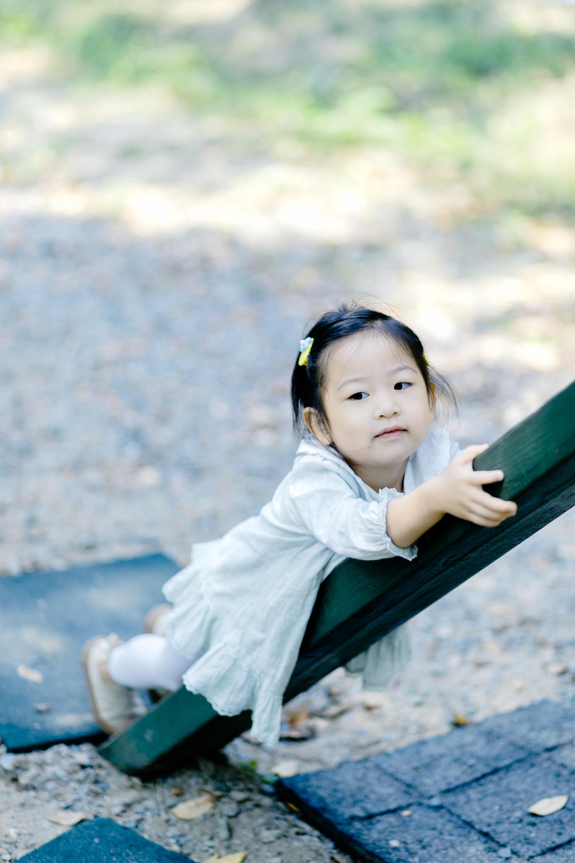虽然菲比不愿意和爸爸一起挑战,但是她会站一旁对身在高处的爸爸说:“你要小心点”,她也会对尝试挑战项目的我说:“我在终点迎接你”。