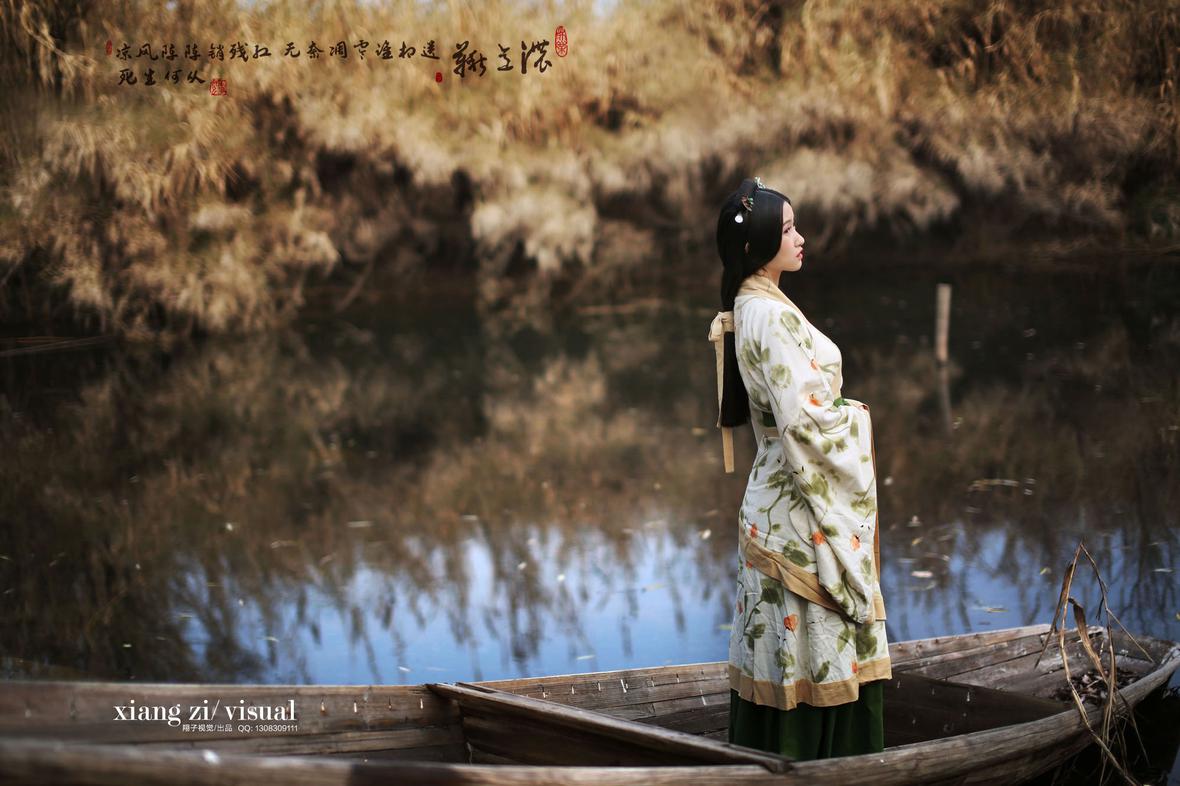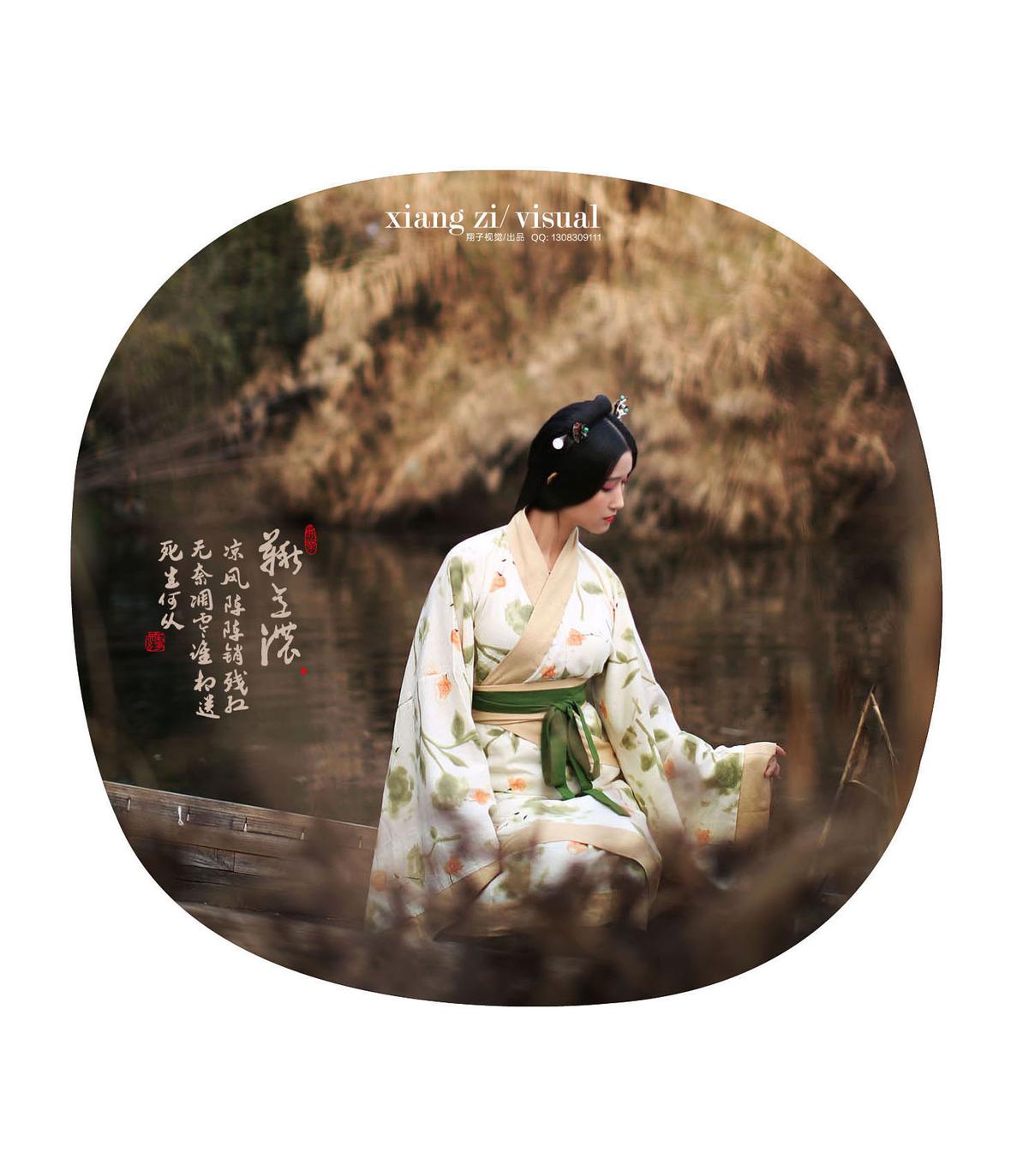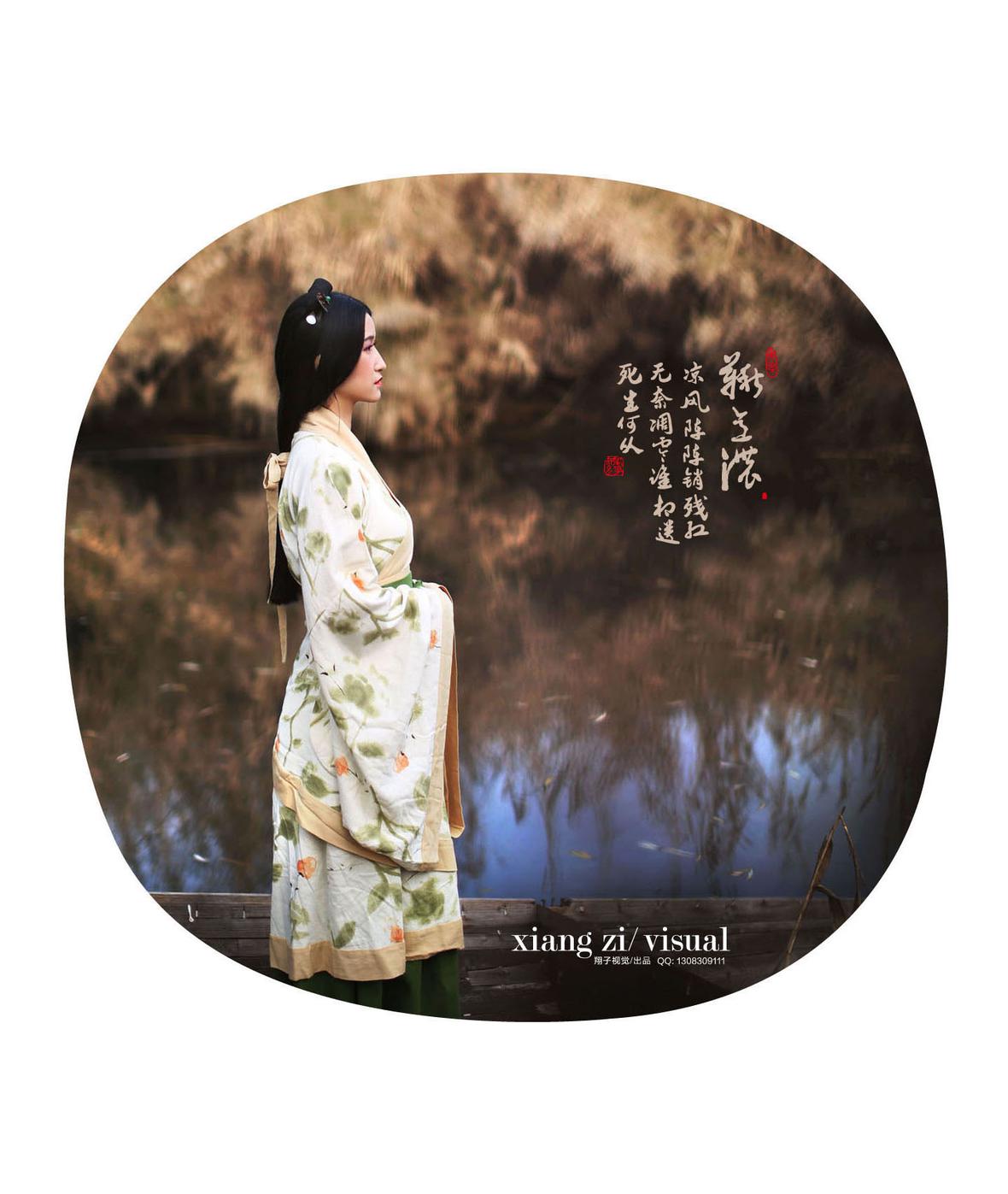 秋月栽云浮绿绮,罗衣带水染青痕。西风过案萍踪隐,花落明池一瓣分。