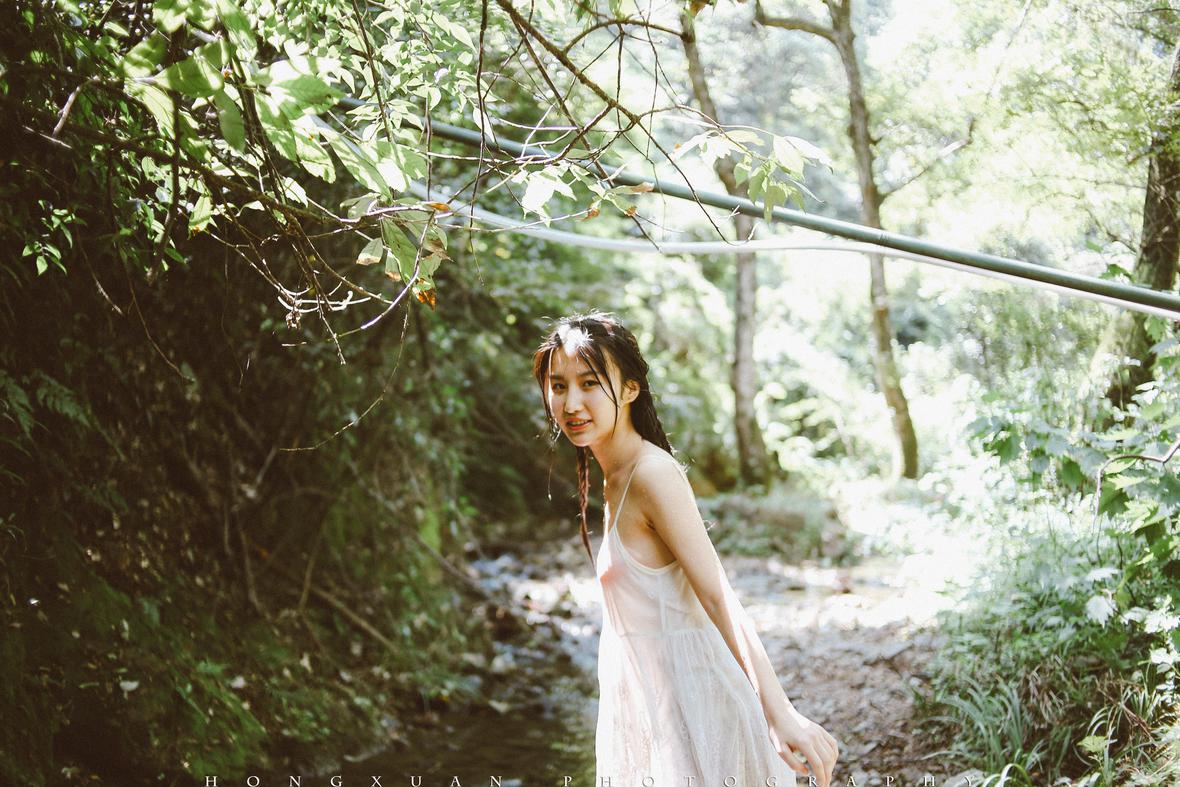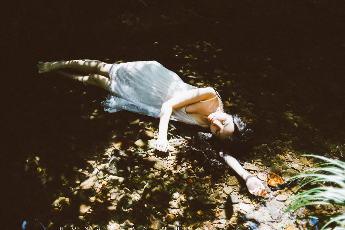 溪水微凉,雅婷握着我的手慢慢坐到水里,抽了一口气躺下去,嘴里念叨着:我不怕冷,只要美就好……