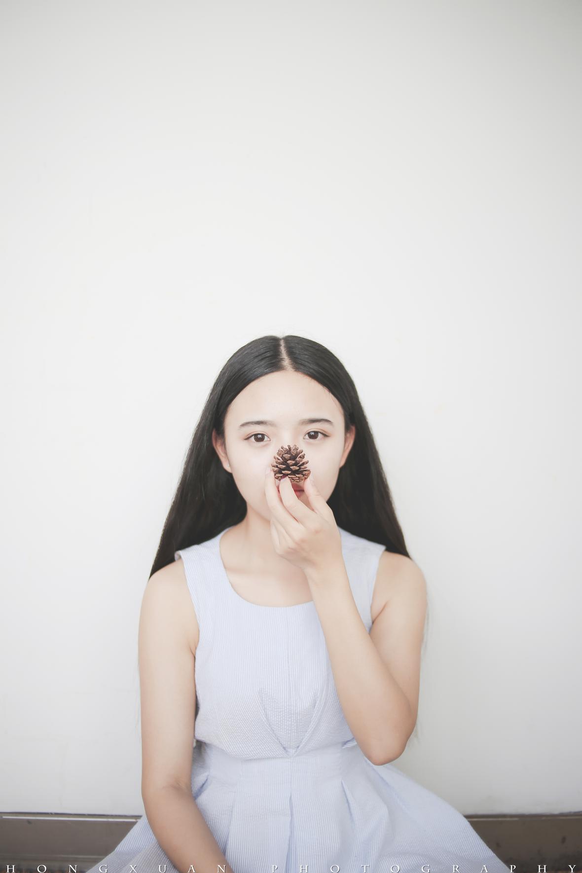 二妞有很漂亮的眼睛,有及腰长发,还有略显害羞的表情。
