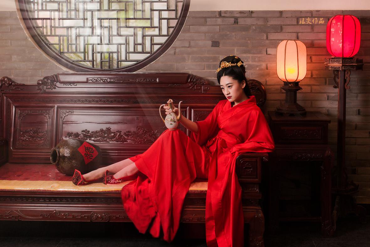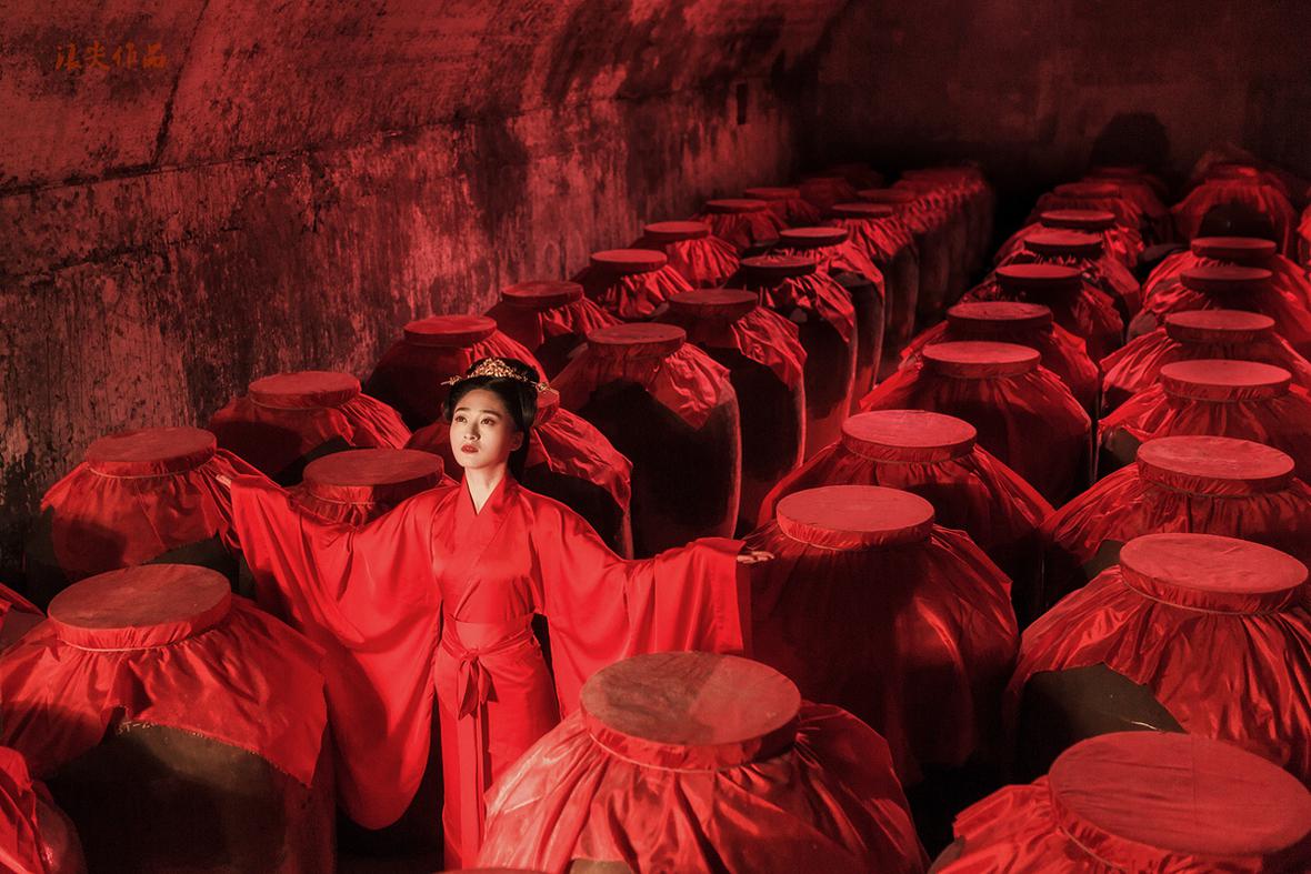一身红装,一地酒红,酒入愁肠,醉了红颜……