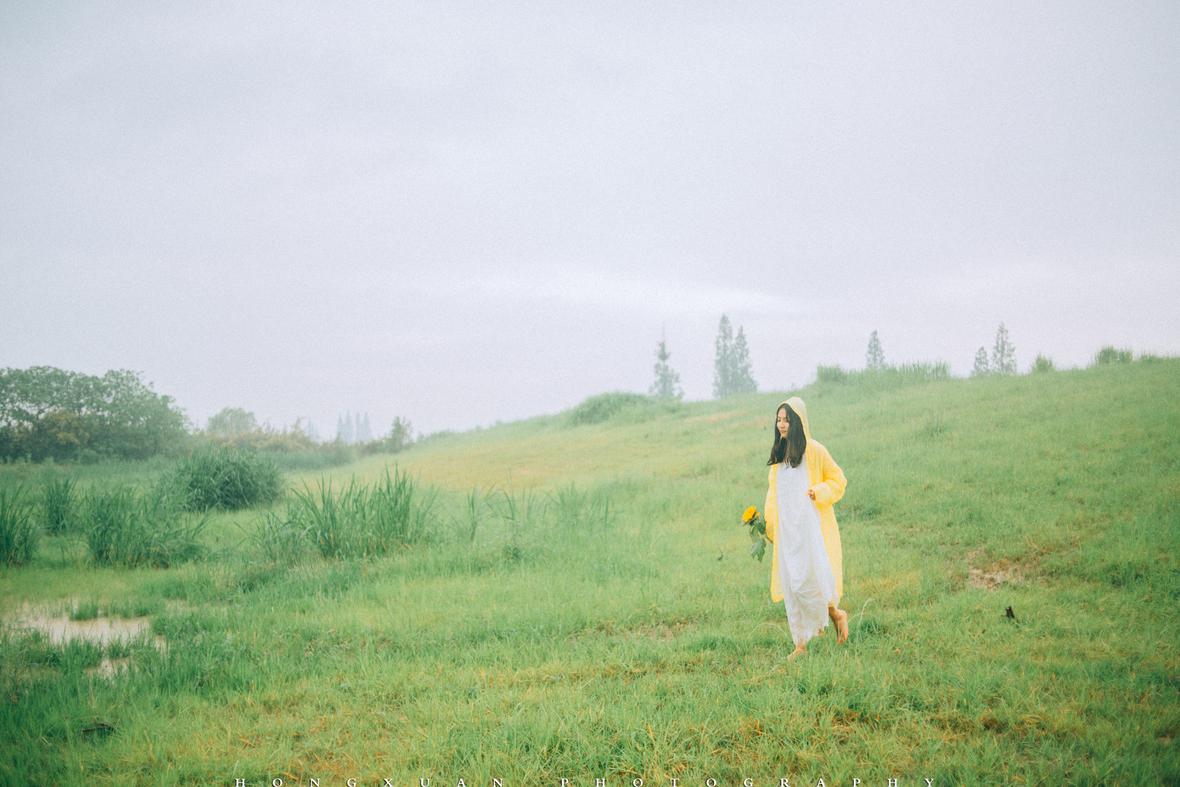 到了目的地,看着瓢泼大雨的车外,两个人躲在车里像蝗虫一样啃了一些零食,最终心一横,还是出去拍照吧。