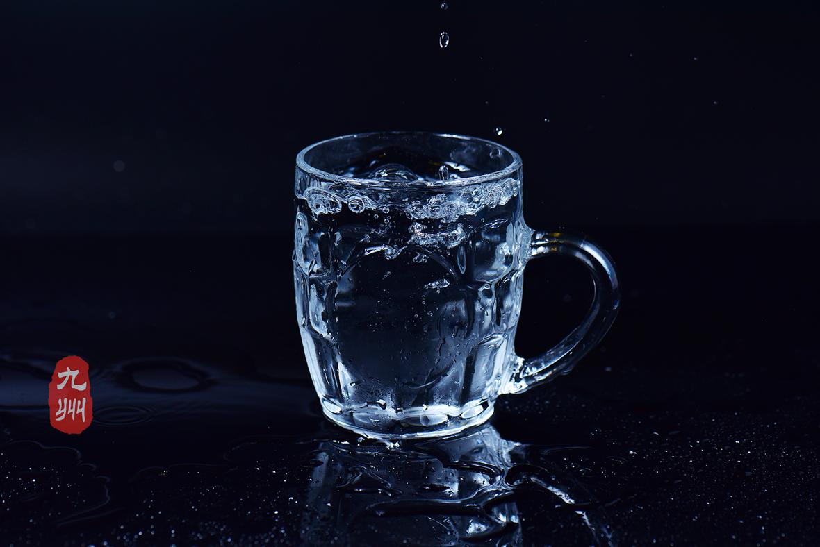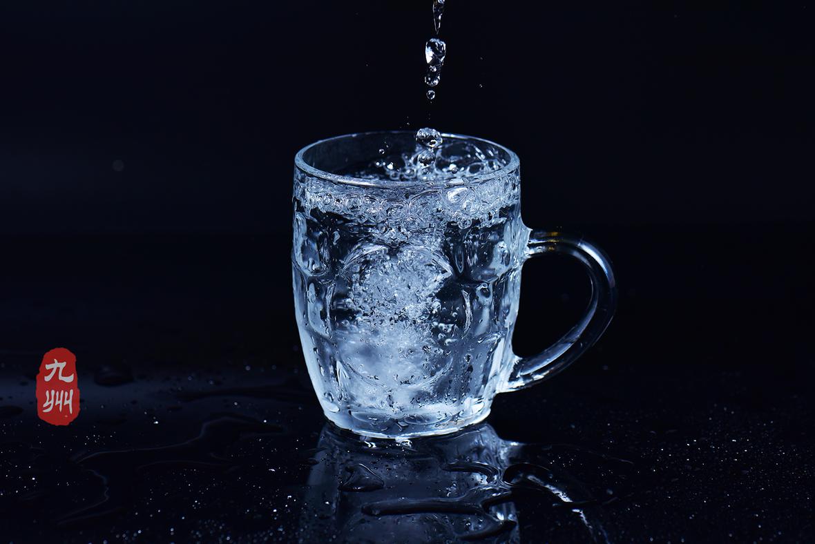 白水舞动于纯黑空间 静谧而灵动