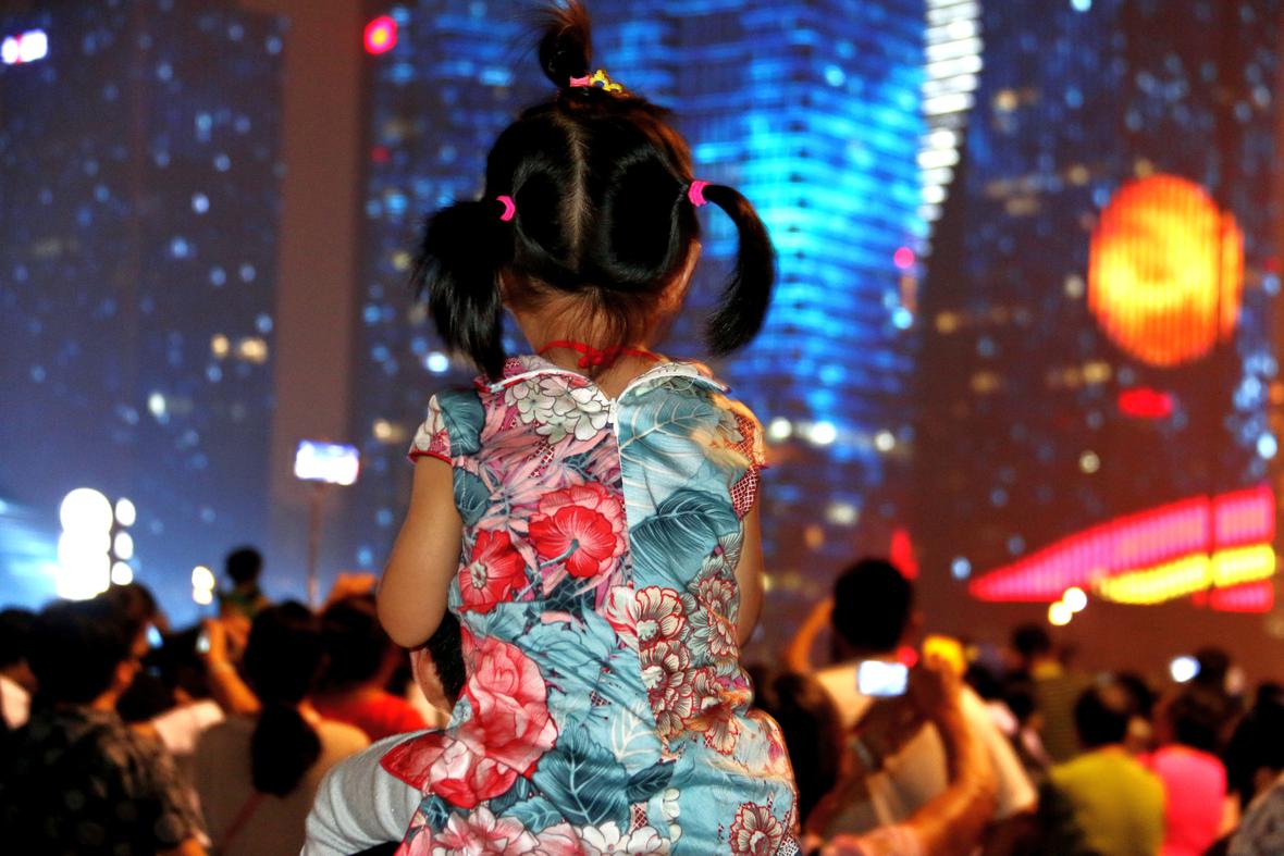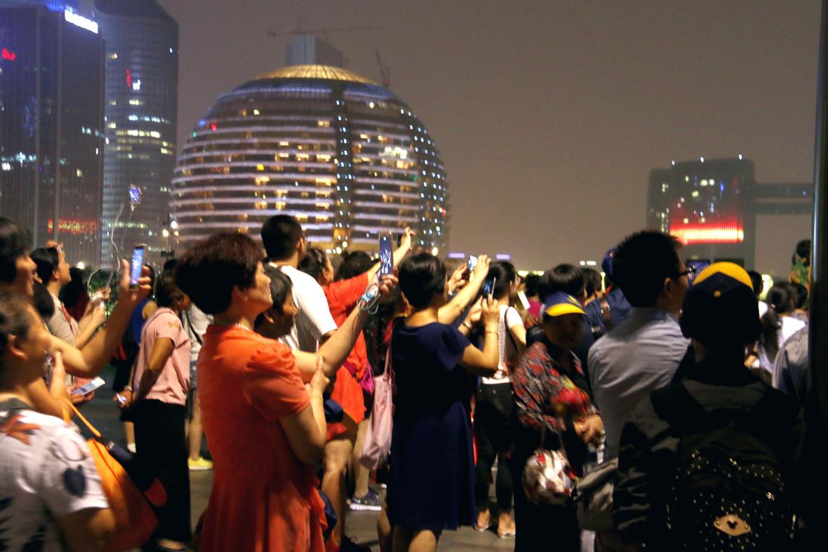 杭州市民分享钱江新城G20期间灯光秀
