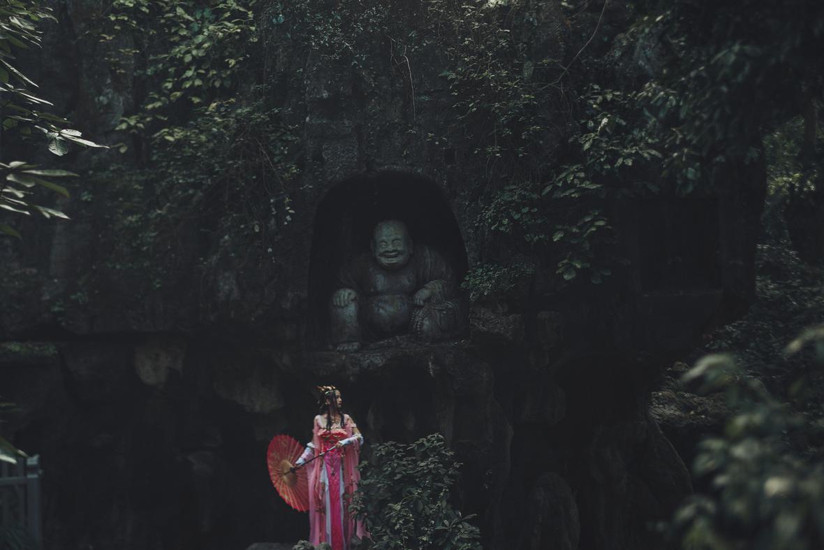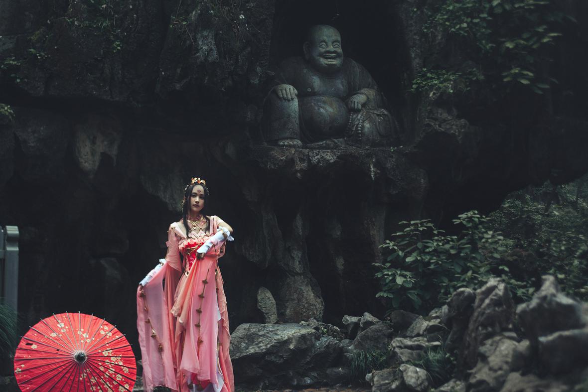《古诗有云》天朗气清,红叶粼粼;但闻鸟语,不见云林。原PO。摄影/后期@摄影-好名字 协力@萝卜想从非洲土著净化成欧洲人 排版@墨丫墨悠悠 服饰@六习习 长稠扇@空城华服