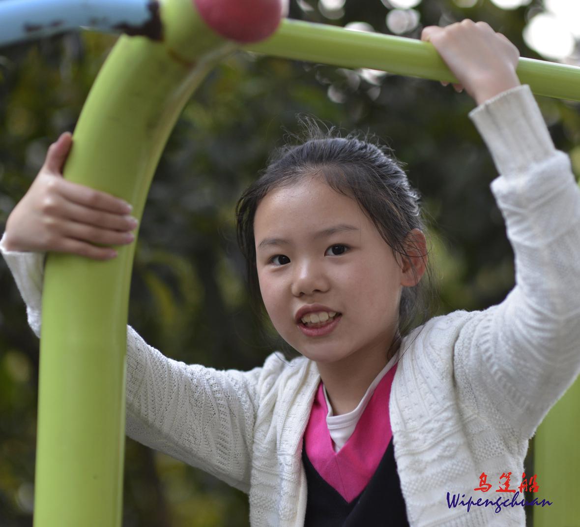 晚饭后在小区河边散步,偶见一小女孩在玩健身器材,还可爱天真,摄之留作纪念。
