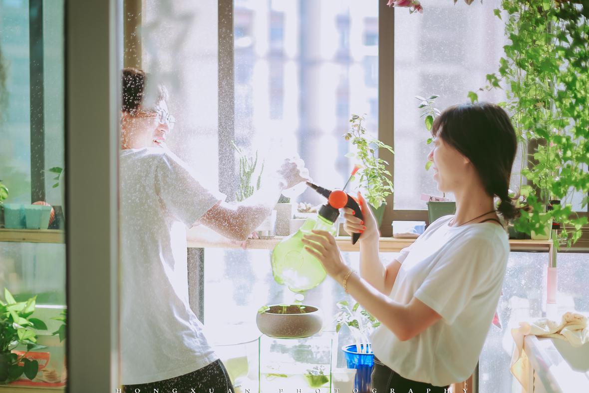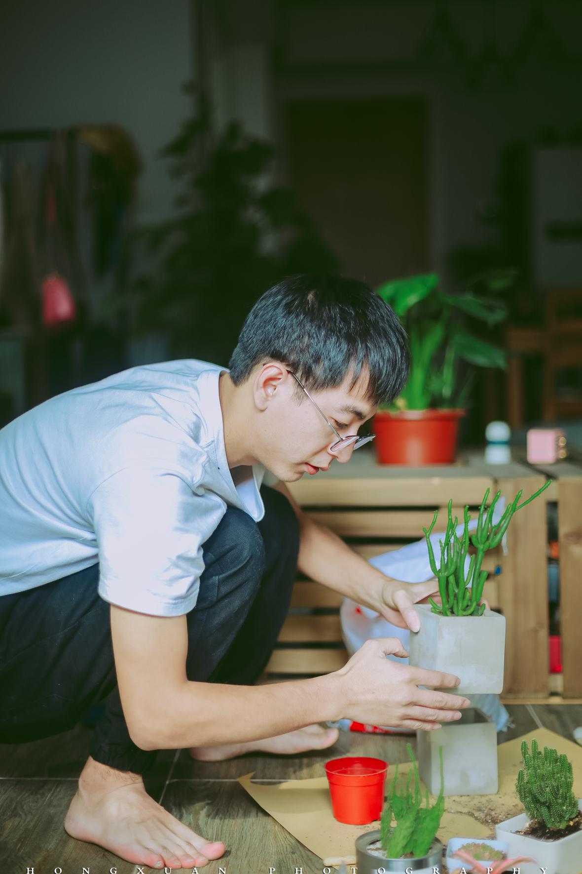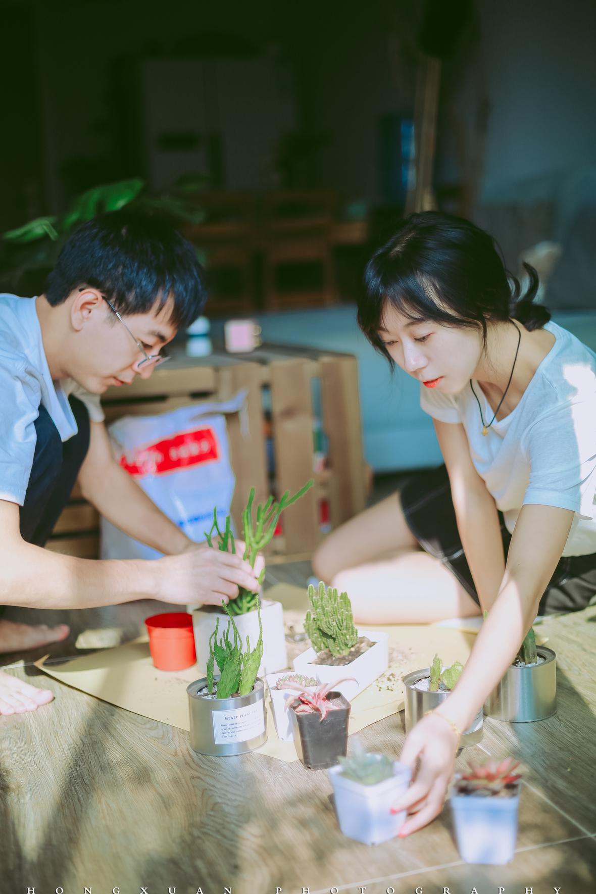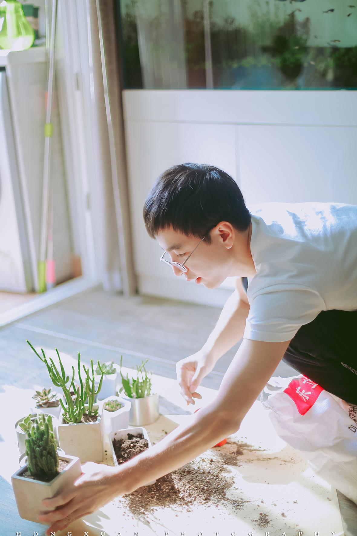 来到你们的小家,绿植、多肉、鱼类、螃蟹、鸟、fighting,你们总能把生活的环境打造得宛若个小动物园,让人觉得莫名亲切。瞳瞳指着电视柜下方冒芽的植物对我说,这是罗汉松,我们自己捡来的种子培的。