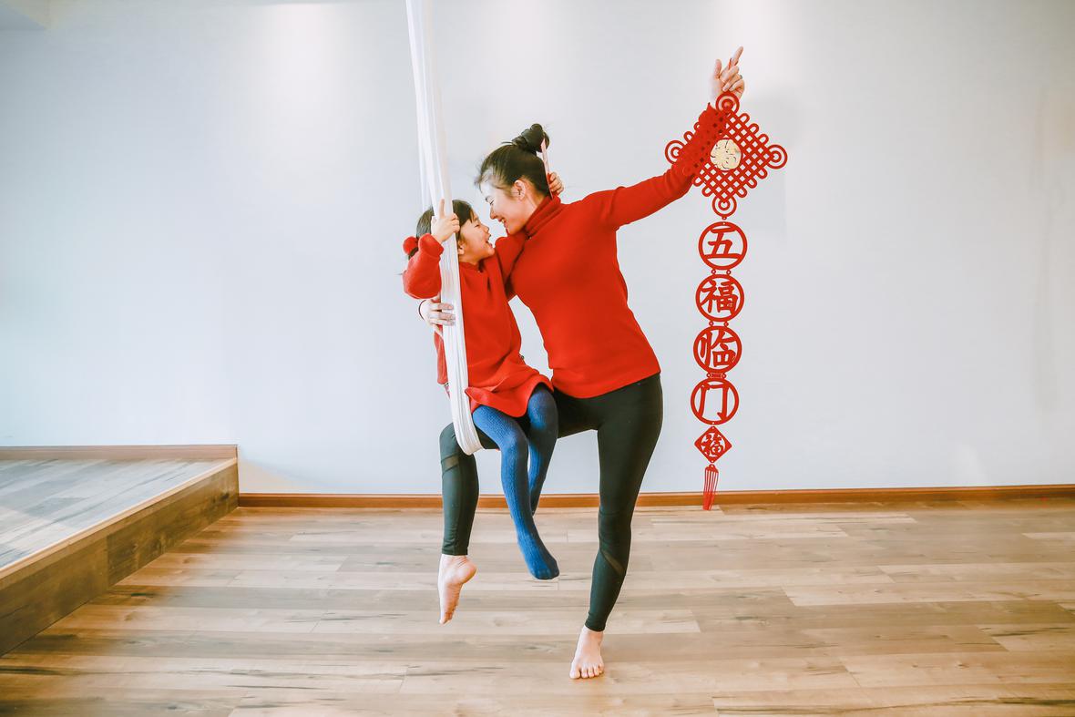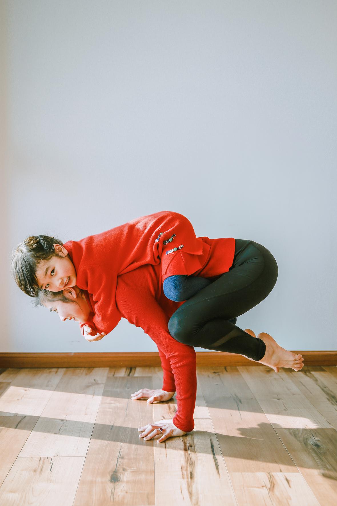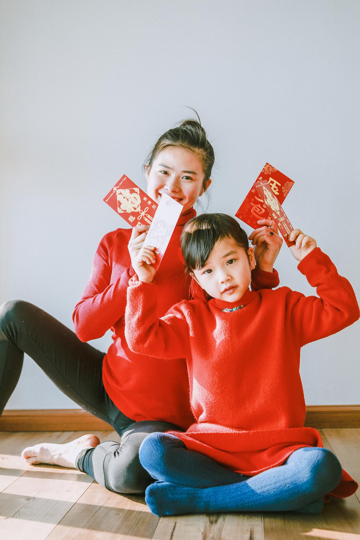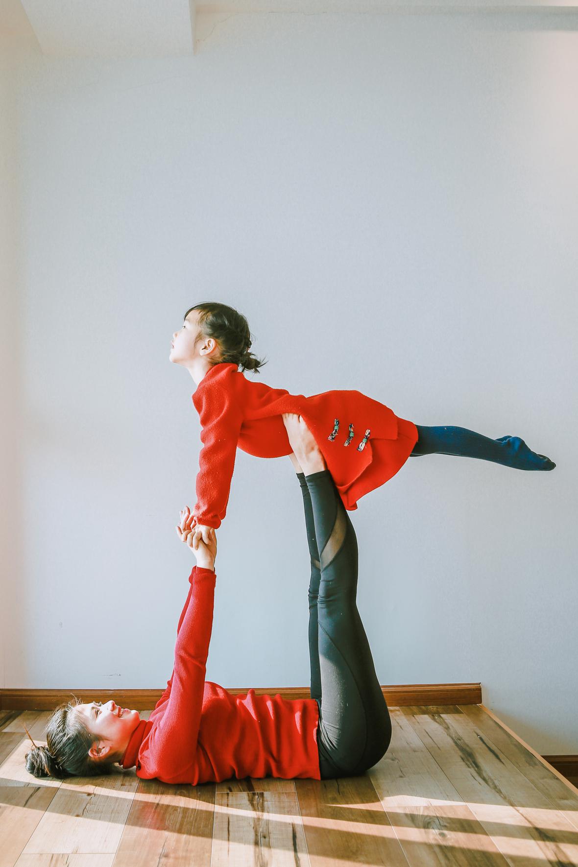 和元元认识好久好久了,那天在她朋友圈看到她的女儿穿着红色棉袄的照片,喜气洋洋的,这便约了回头拍点亲子瑜伽的照片吧。