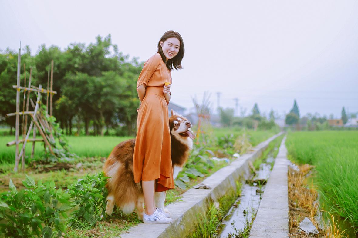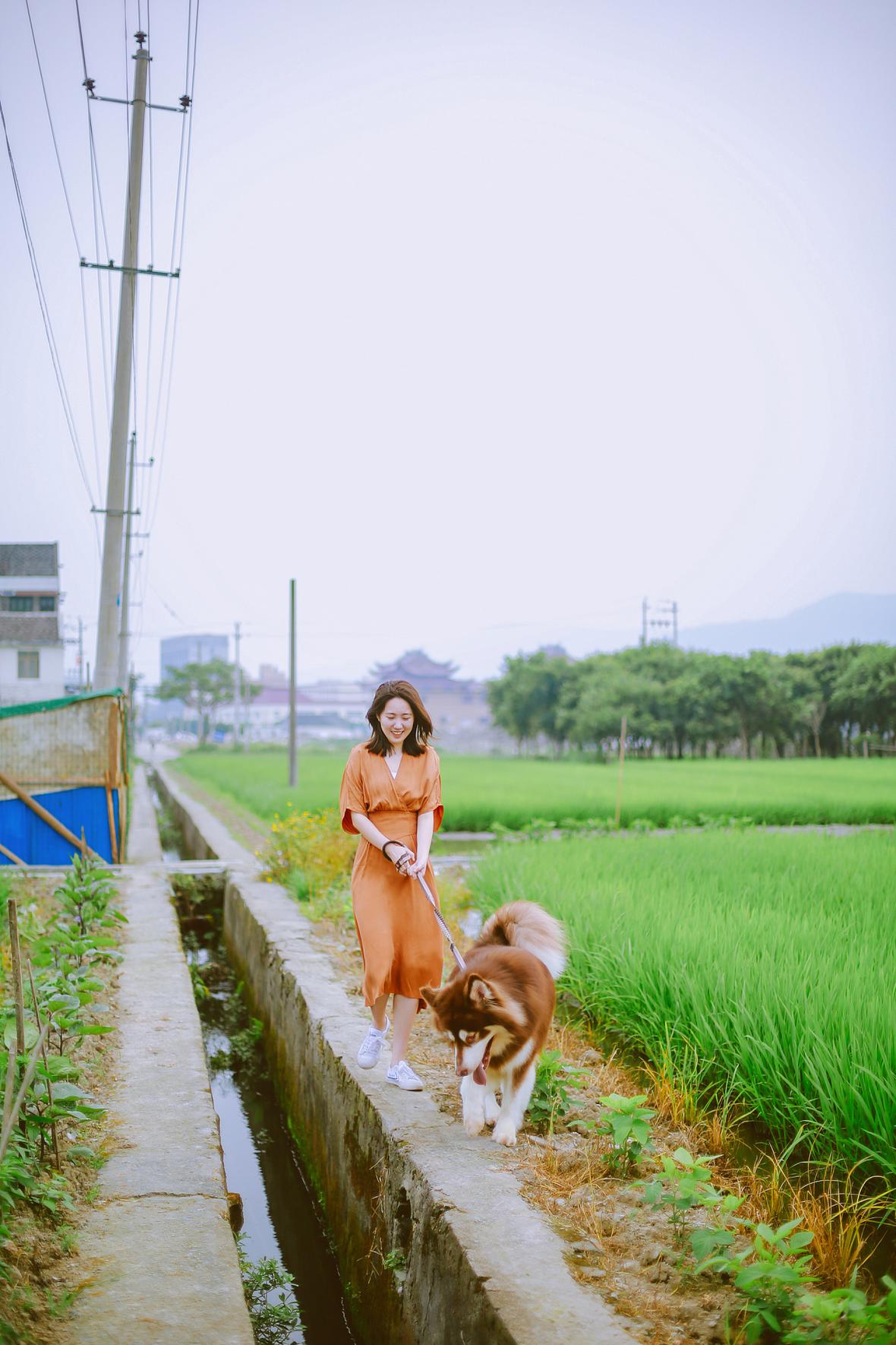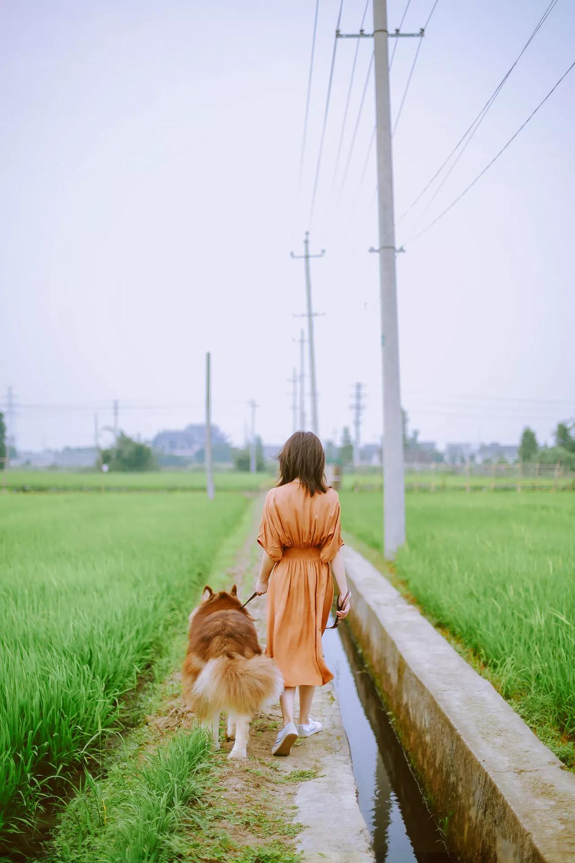 若男将粽子洗白白,带去田野里散步。
