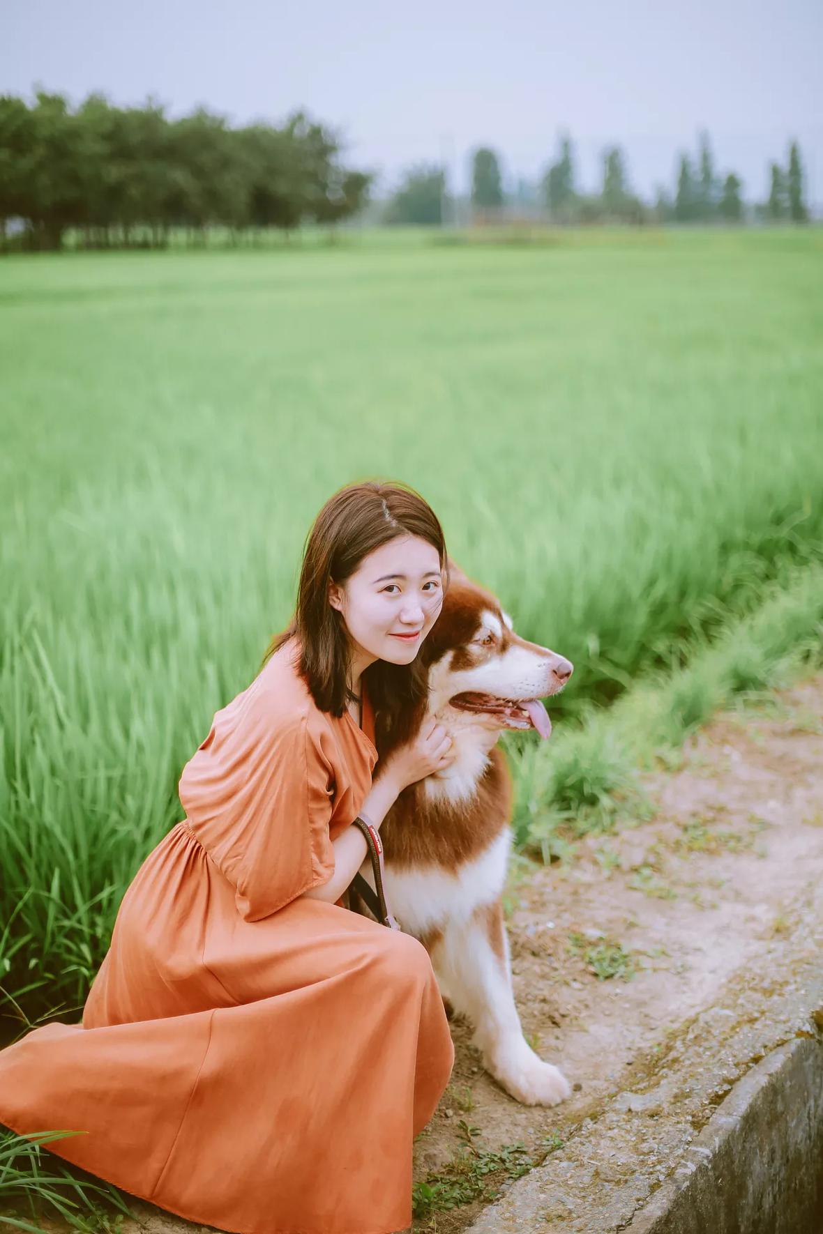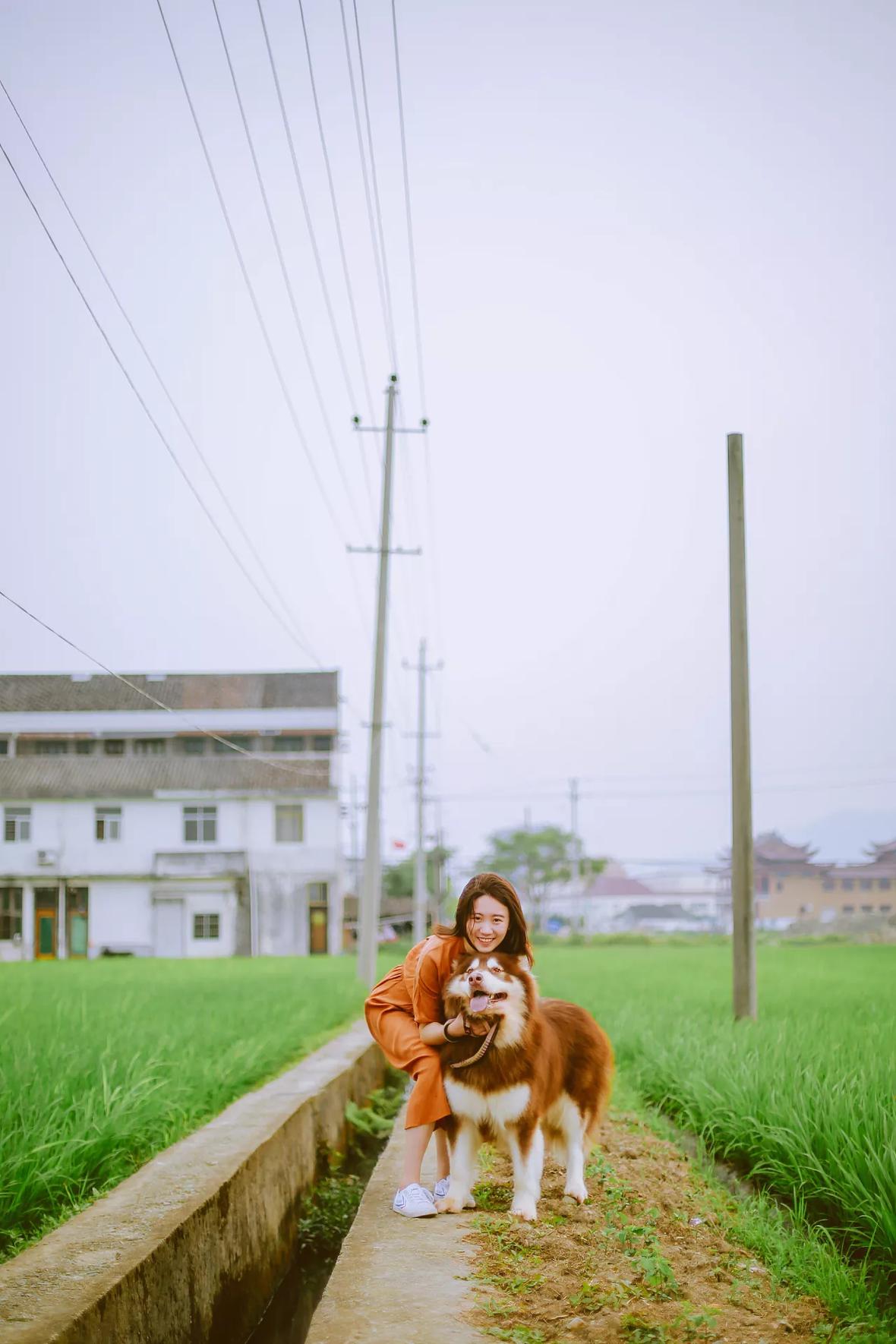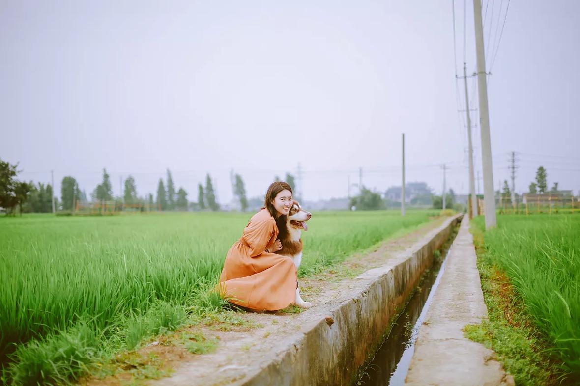 若男将粽子洗白白,带去田野里散步。