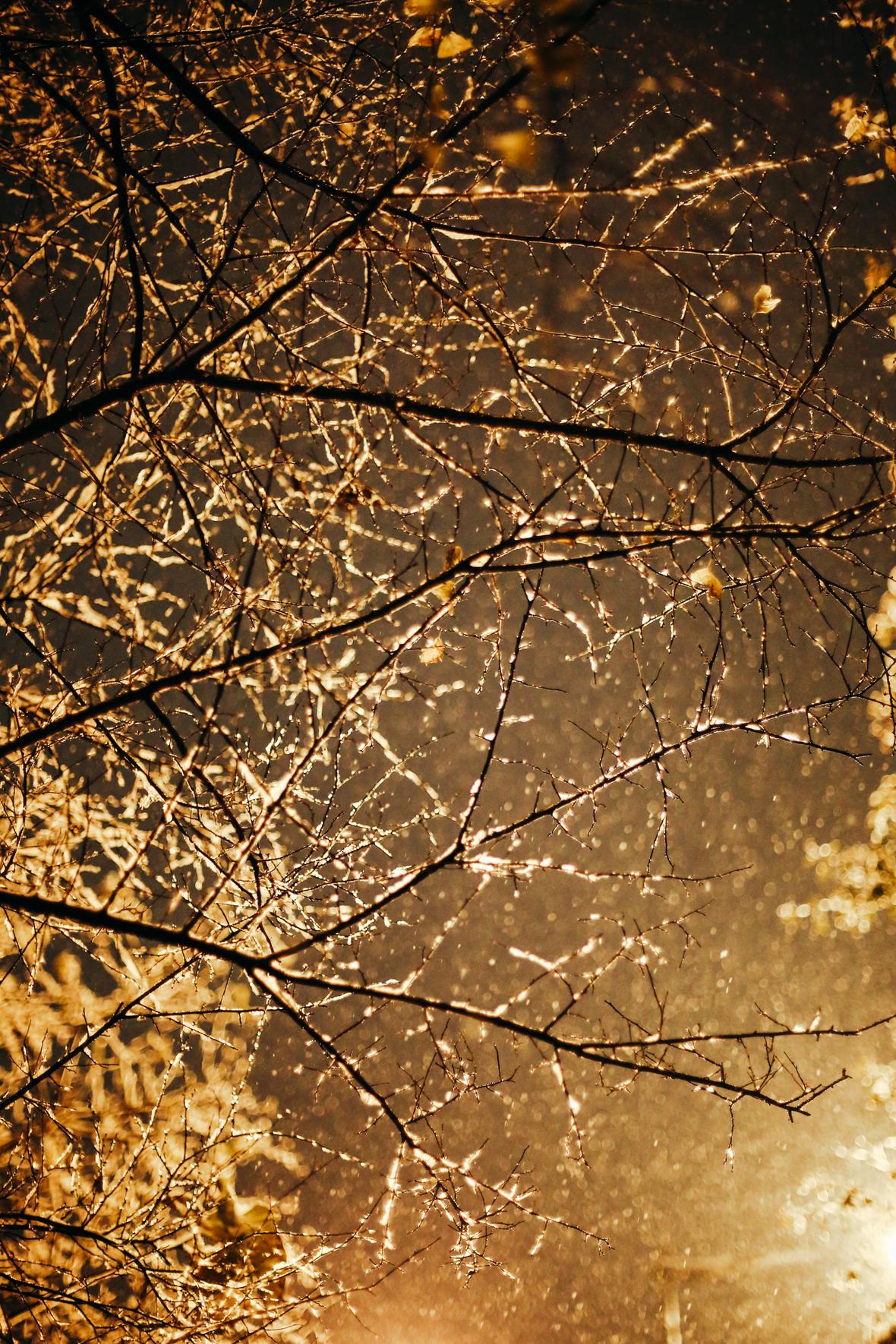 去年也遇到了一场雪景。我们从泰国旅行回来,飞机落地,走出航站楼。举目看见路灯下雪簌簌地下,美极了。