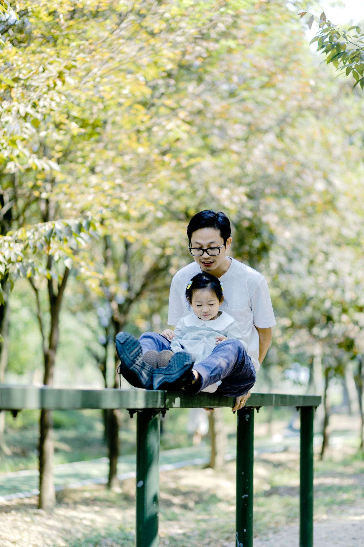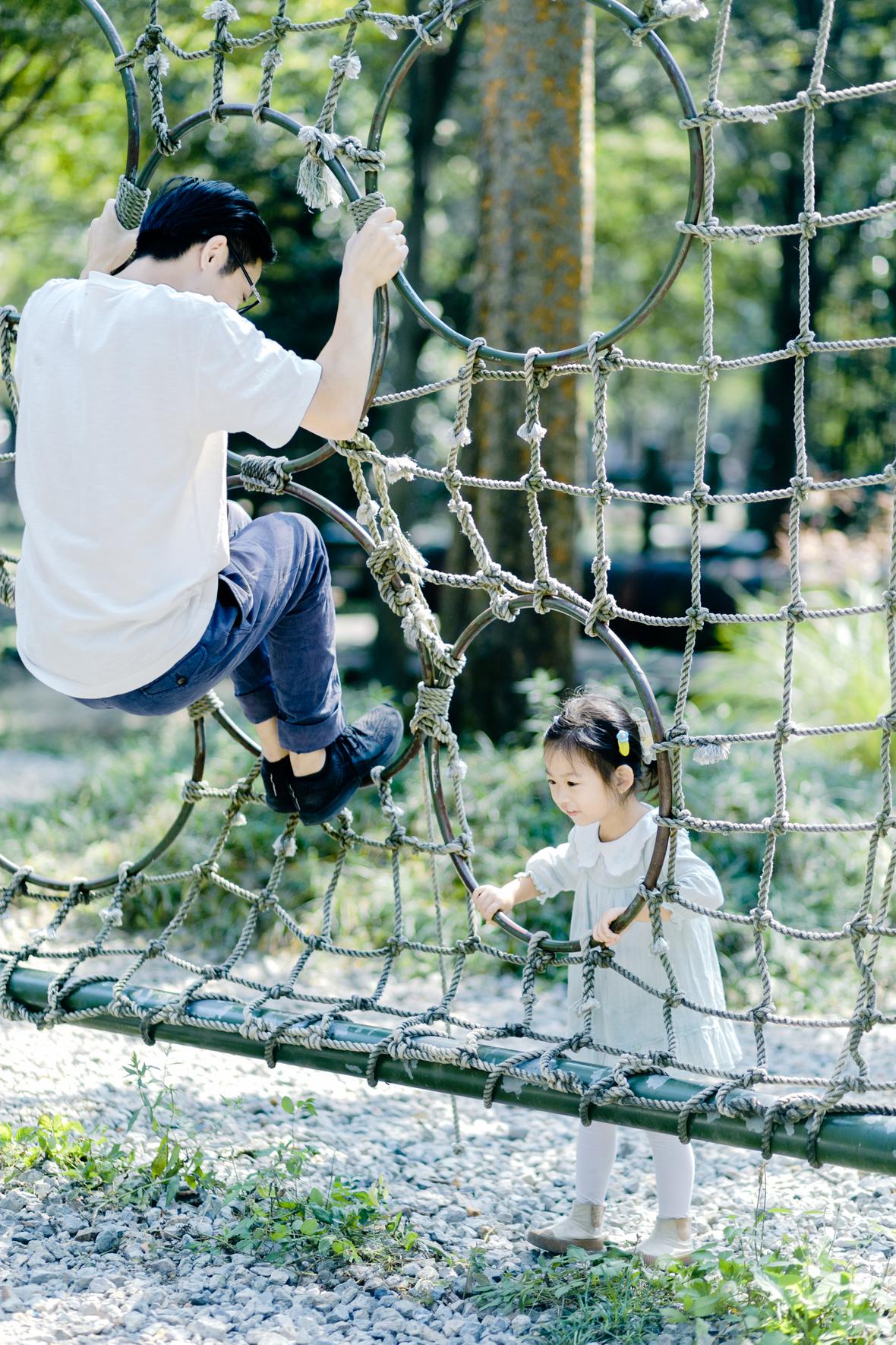 虽然菲比不愿意和爸爸一起挑战,但是她会站一旁对身在高处的爸爸说:“你要小心点”,她也会对尝试挑战项目的我说:“我在终点迎接你”。