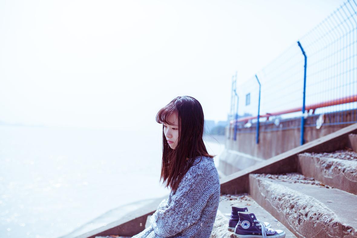 小河边上依偎在树下的少女