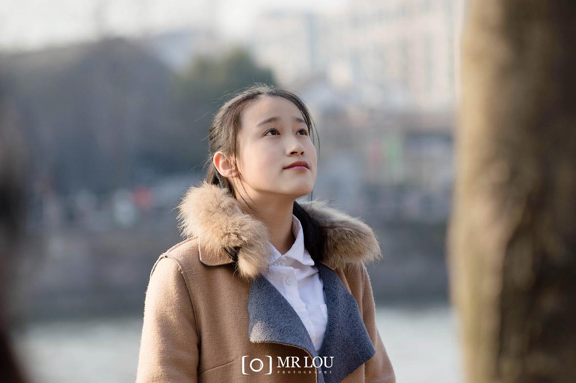 京杭大运河边上的素颜美女
