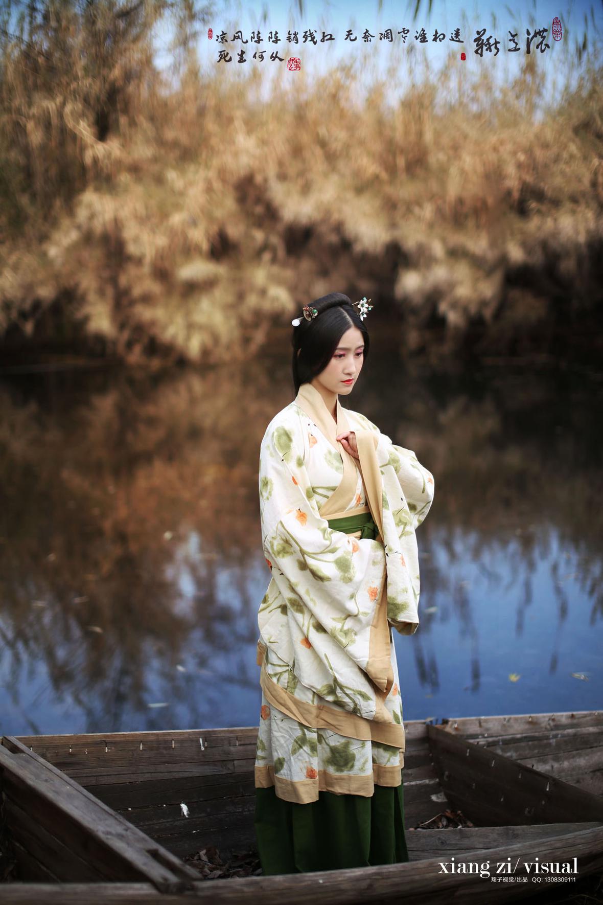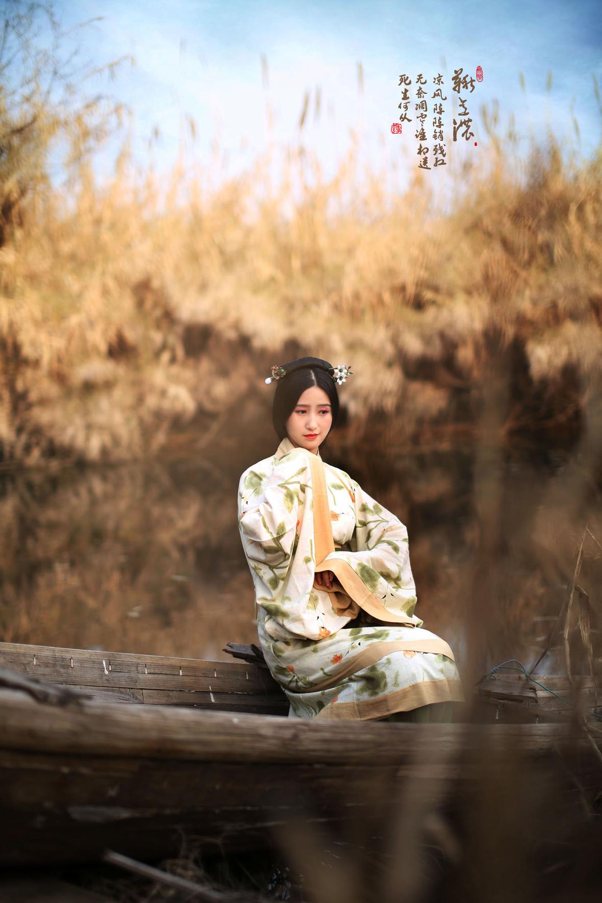 秋月栽云浮绿绮,罗衣带水染青痕。西风过案萍踪隐,花落明池一瓣分。